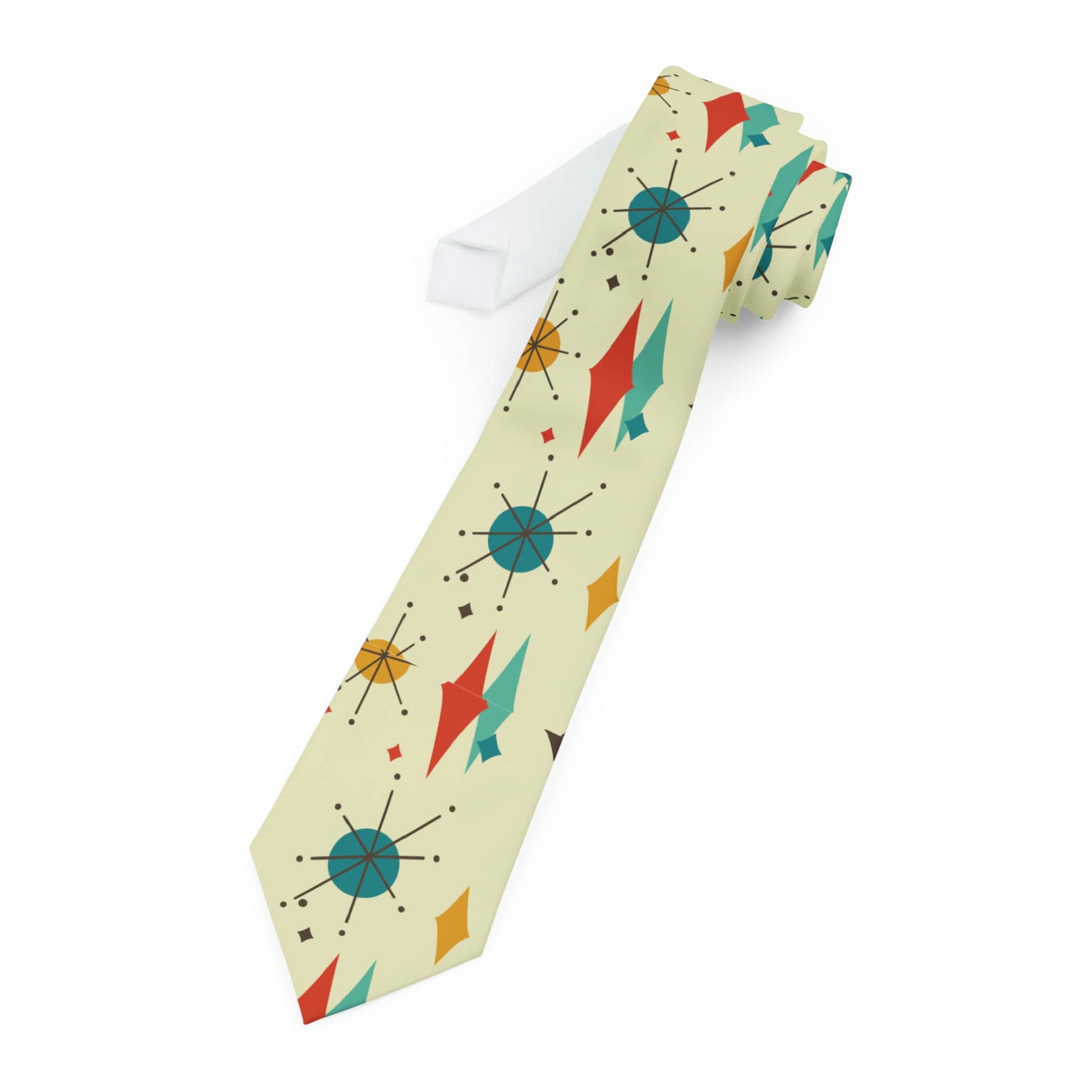 Mit unserer Mid-Century Starburst-Krawatte ziehen Sie alle Blicke auf sich! Kühles Aquamarin und elegantes Senfgelb auf Creme – diese Krawatte erinnert an den 50er-Jahre-Chic. Sie ist nicht nur eine Krawatte, sie ist ein Statement – perfekt für den Mann mit Sinn für zeitlosen Stil und einem Gespür für das Ausgefallene. Machen Sie sich bereit für Gespräche und Komplimente!