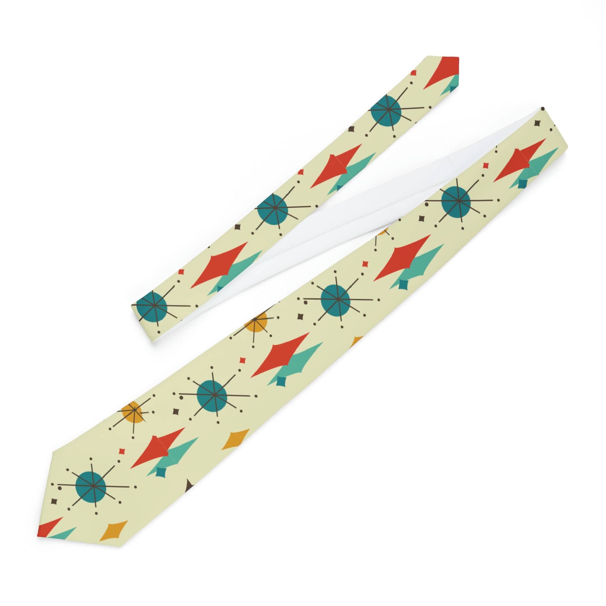 Franziskaner Diamant Starburst Krawatte, Mid Century Modern Aqua Senfgelb, Creme Retro Geometrische Herrenmode Krawatte