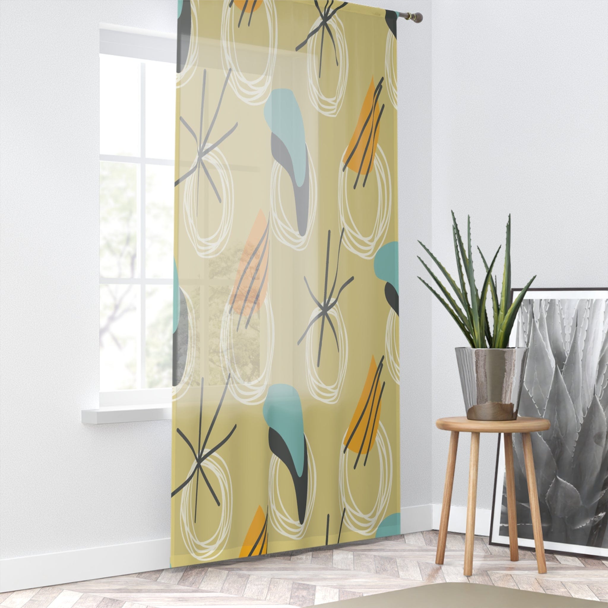 Verleihen Sie Ihrem Zuhause mit diesen wunderschönen Atomic Boomerang Fenstervorhängen einen Hauch von Mid-Century Modern. Die perfekte Mischung aus Retro-Starburst-Design der 50er Jahre und leuchtenden Farben. Die aquamarinblauen und senfgelben Farbtöne verleihen Ihrem Wohnraum sofort stilvolles Flair. Ob Verdunkelung oder transparente Fensterpaneele – diese Vorhänge bieten das perfekte Gleichgewicht zwischen Stil und Privatsphäre. Dank des luxuriösen Designs und des weichen Stoffes werden Sie jahrelang Freude an ihnen haben! Sichern Sie sich noch heute Ihre Atomic Boomerang Fenstervorhänge!