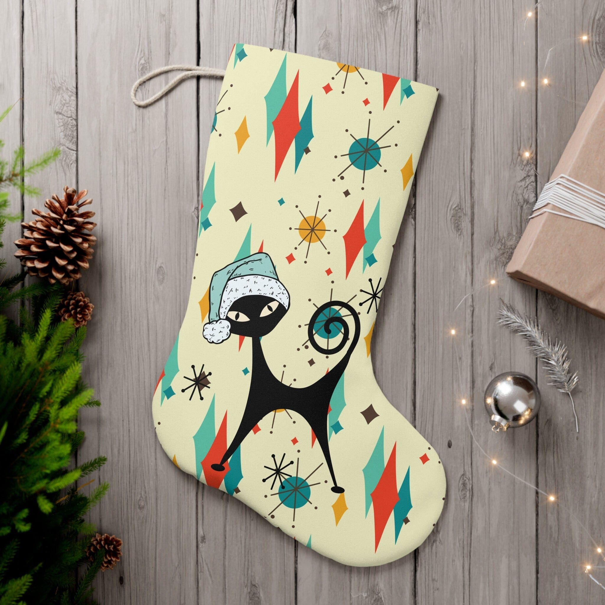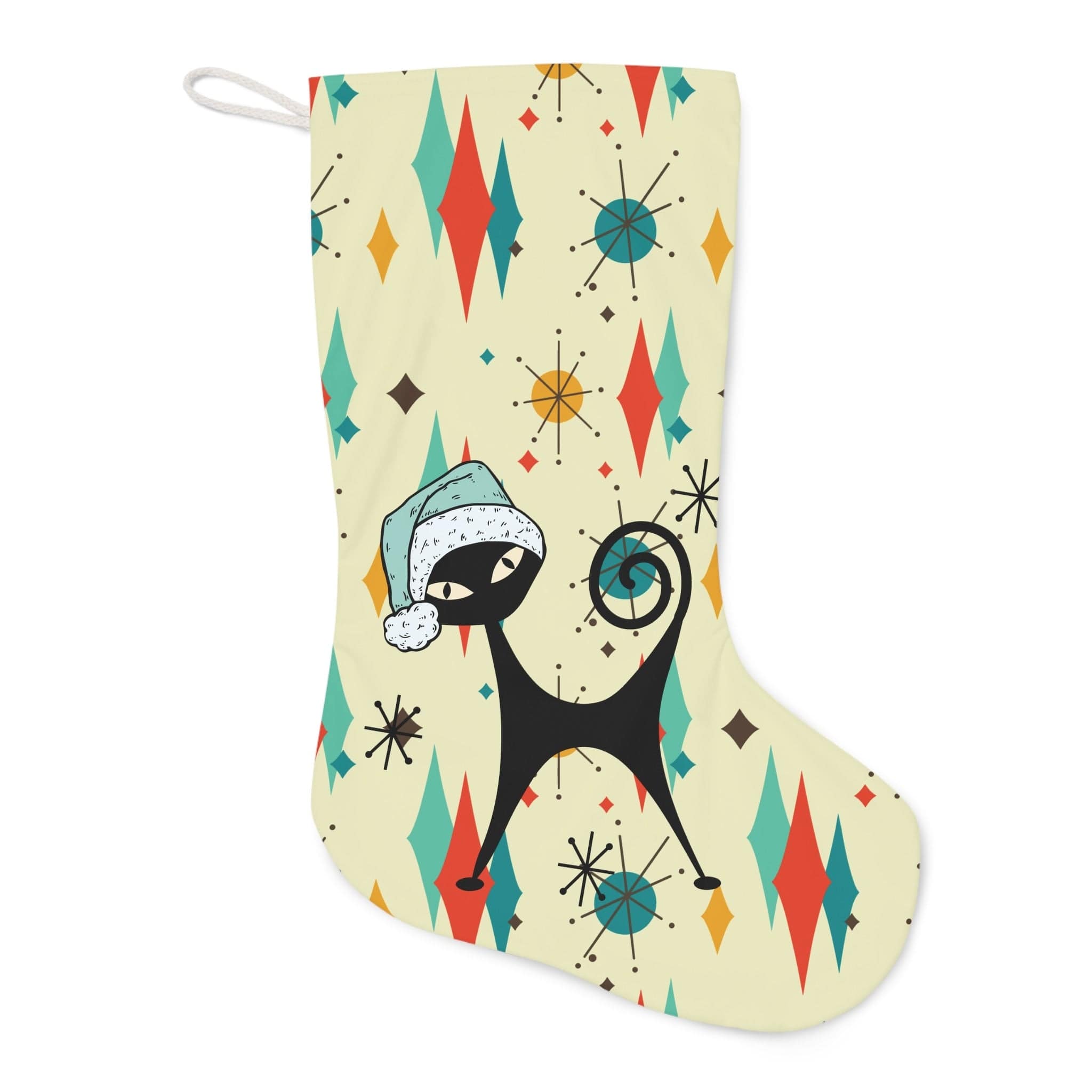 Atomic Cat Franziskaner Diamant Starburst Weihnachtsstrümpfe, Mid Century Modern Kitschige Weihnachtsmantel Dekoration