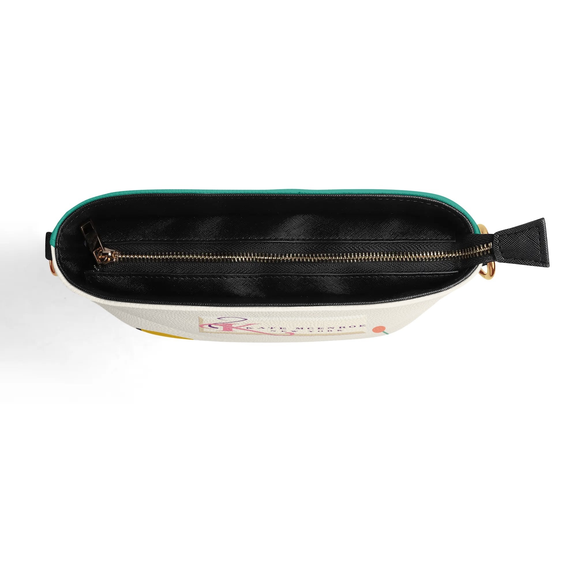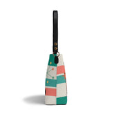 Machen Sie all Ihre modebewussten Freunde neidisch mit der Atomic Cat Mid Century Modern Teal Coral Cream Striped Crossbody Bucket Bag. Diese Handtasche im Retro-Stil kombiniert auffällige geometrische Muster mit einer verspielten Farbpalette und verleiht jedem Outfit eine originelle Note. Bleiben Sie mit diesem Must-have-Accessoire im Trend!