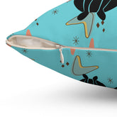 Atomic Cat Mid Century Modern Kissen, Retro Boomerang und Starburst Design, 50er Jahre Stil Teal MCM Akzentkissen