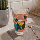 Machen Sie sich bereit für stilvolles Cocktail-Mocktail-Glas im Atomic Cat Retro Mid Century Modern! Mit seinem verspielten, kitschigen Design mit einer Sexton-Katze und einem Sternenmotiv ist dieses Pintglas ein Muss für jede MCM-Bar. Ein Hoch auf ausgefallene Drinks und gute Laune!