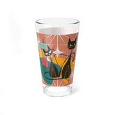 Atomic Cat Retro Mid Century Modern Cocktail Mocktail Pint Glas, 50er Jahre Kitsch Sexton Cat Starburst Trinkglas, MCM Barware