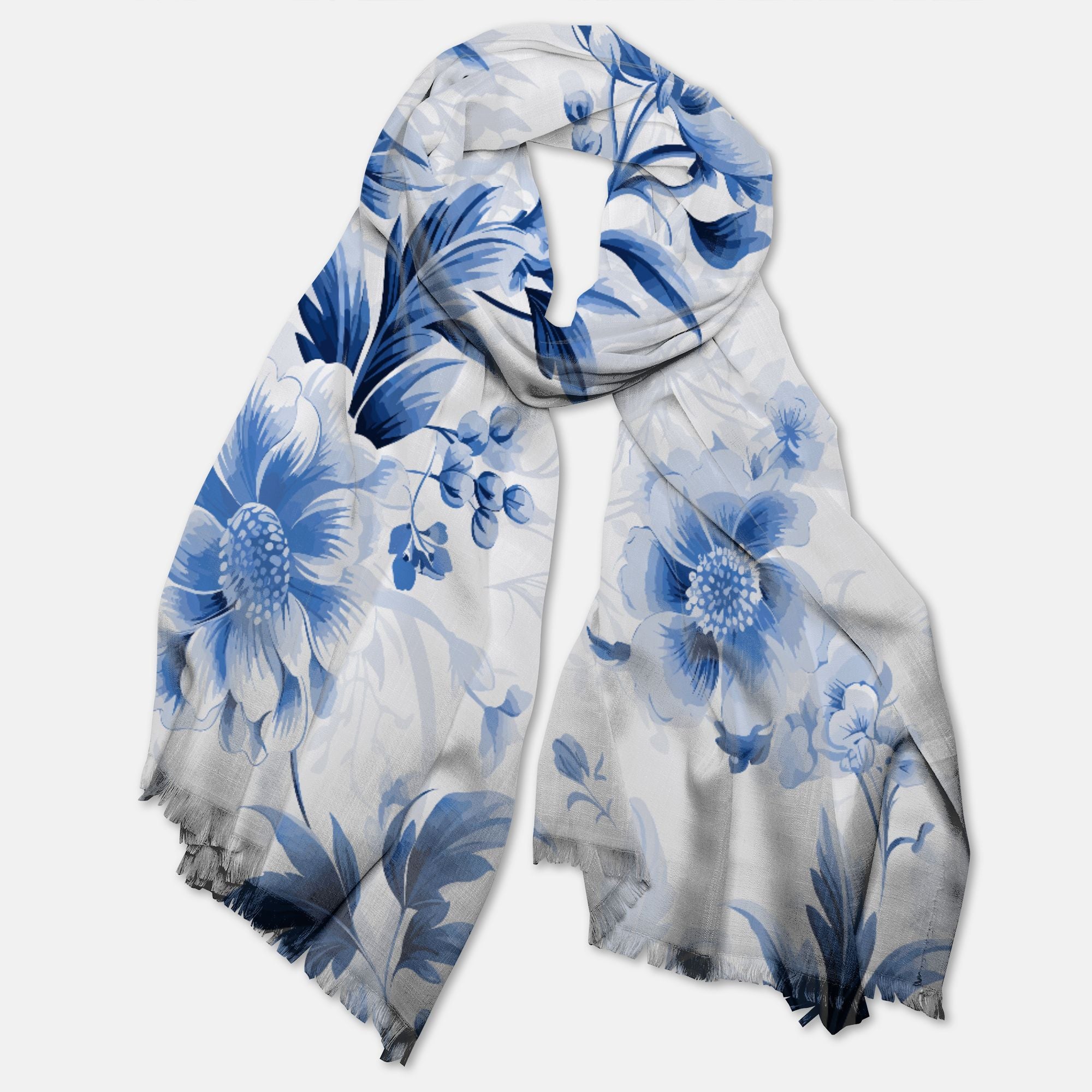 Blue Blooms Klassischer Chinoiserie-Pashmina-Schal