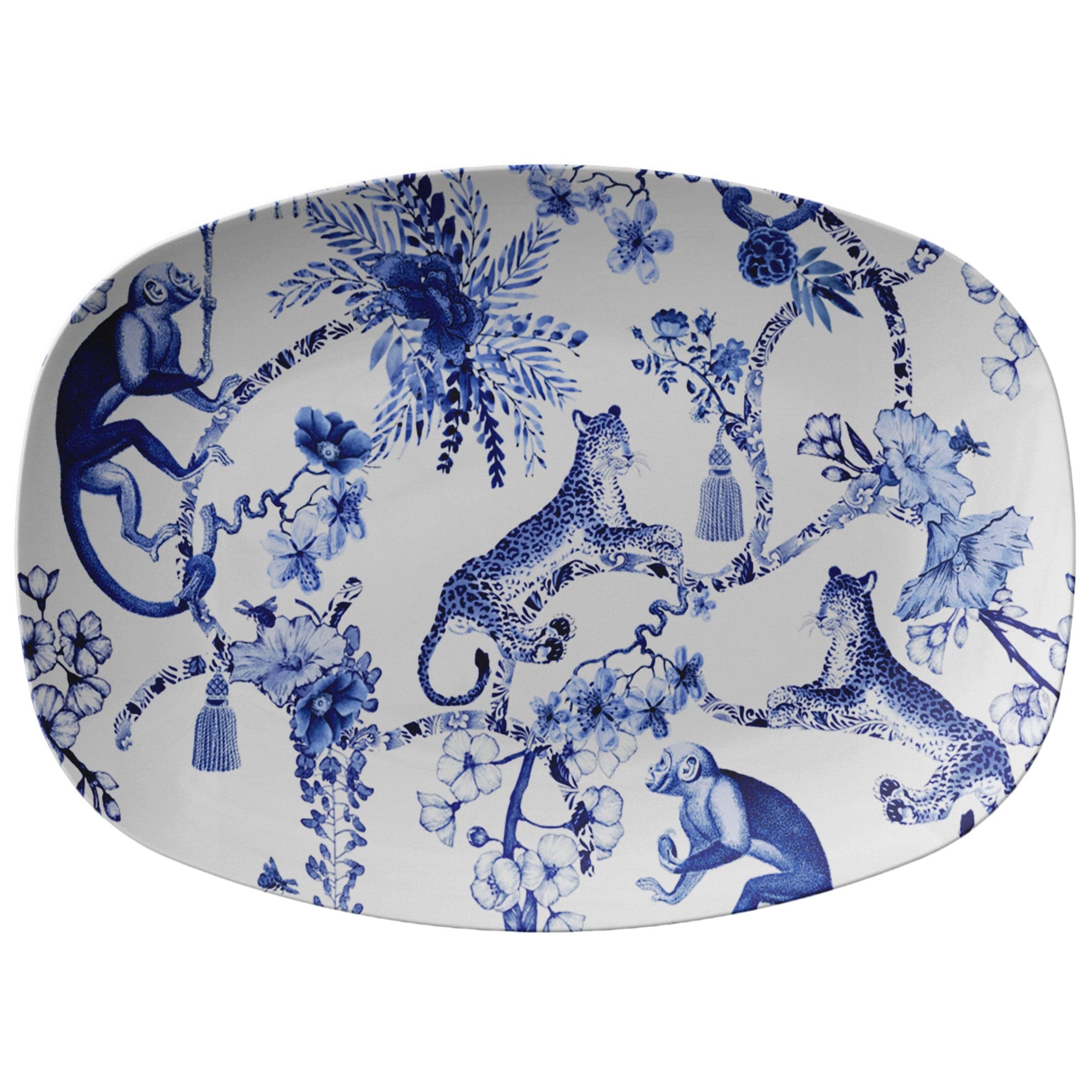 Genießen Sie die schönen Dinge des Lebens mit unserer luxuriösen Chinoiserie Botanical Toile Platte. Wunderschön gefertigt aus Decoware® Polymer Plastic , ist dieses elegante und innovative Material FDA-zugelassen für Backofen, Mikrowelle und Spülmaschine. Diese edle, marineblau-weiße Chinoiserie-Servierplatte sieht drinnen wie draußen großartig aus und verleiht dank ihres atemberaubenden Blumendesigns jedem Anlass einen Hauch von Eleganz. Außerdem ist sie schwerer als Melamingeschirr, sodass Sie sicher sein können, dass sie nach dem Kochen oder Grillen nicht so leicht zerbricht oder absplittert. Gönnen Sie sich etwas Besonderes – ergänzen Sie Ihre Sammlung noch heute mit der Chinoiserie Botanical Toile Platte!