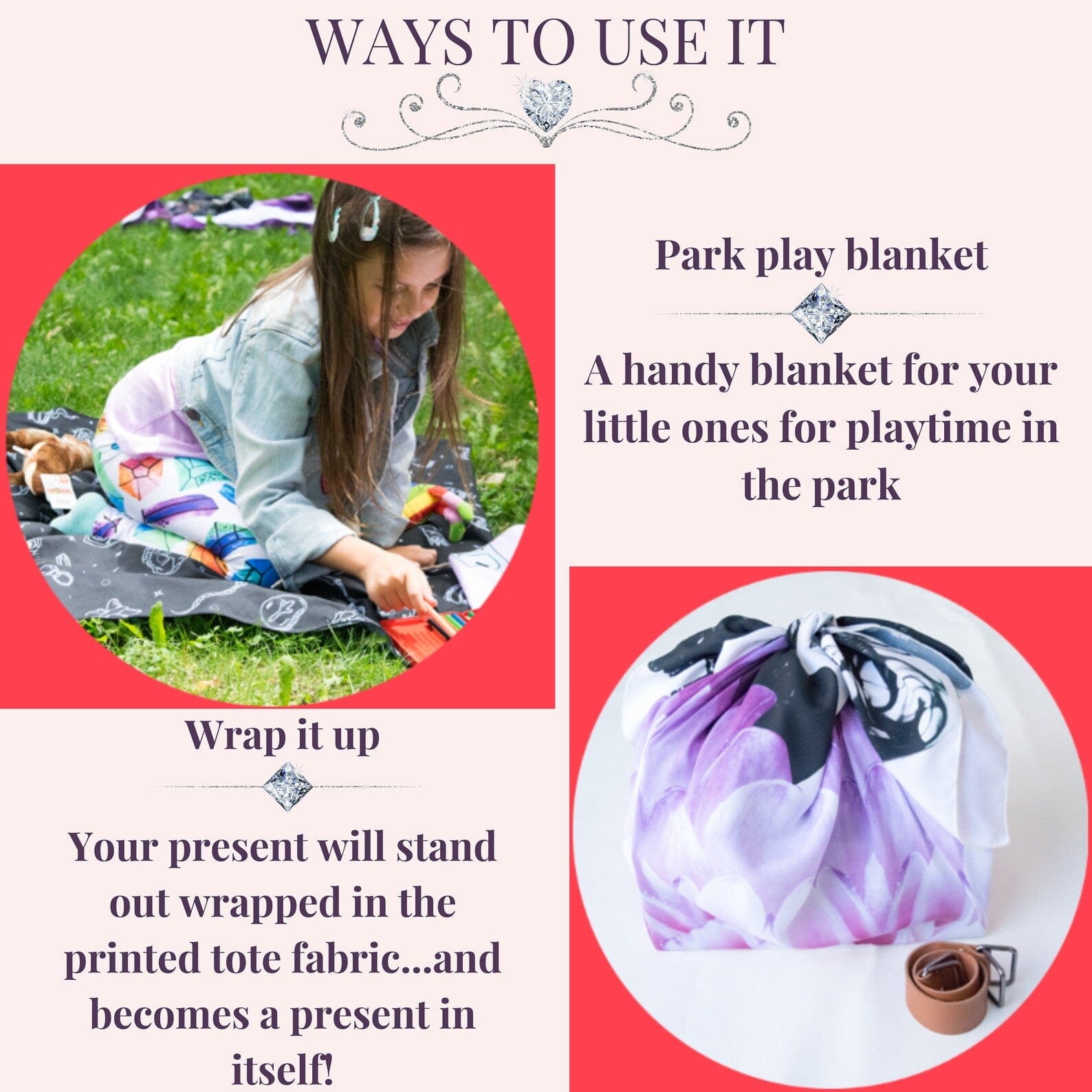 Obwohl wir sie Origami-Tasche nennen, können Sie diesen Origami- Poly-Twill -Stoff zu einer Einkaufstasche falten oder ihn als improvisierte Picknickdecke, Schal oder wunderschöne Geschenkverpackung verwenden. Das ist das Schöne daran!