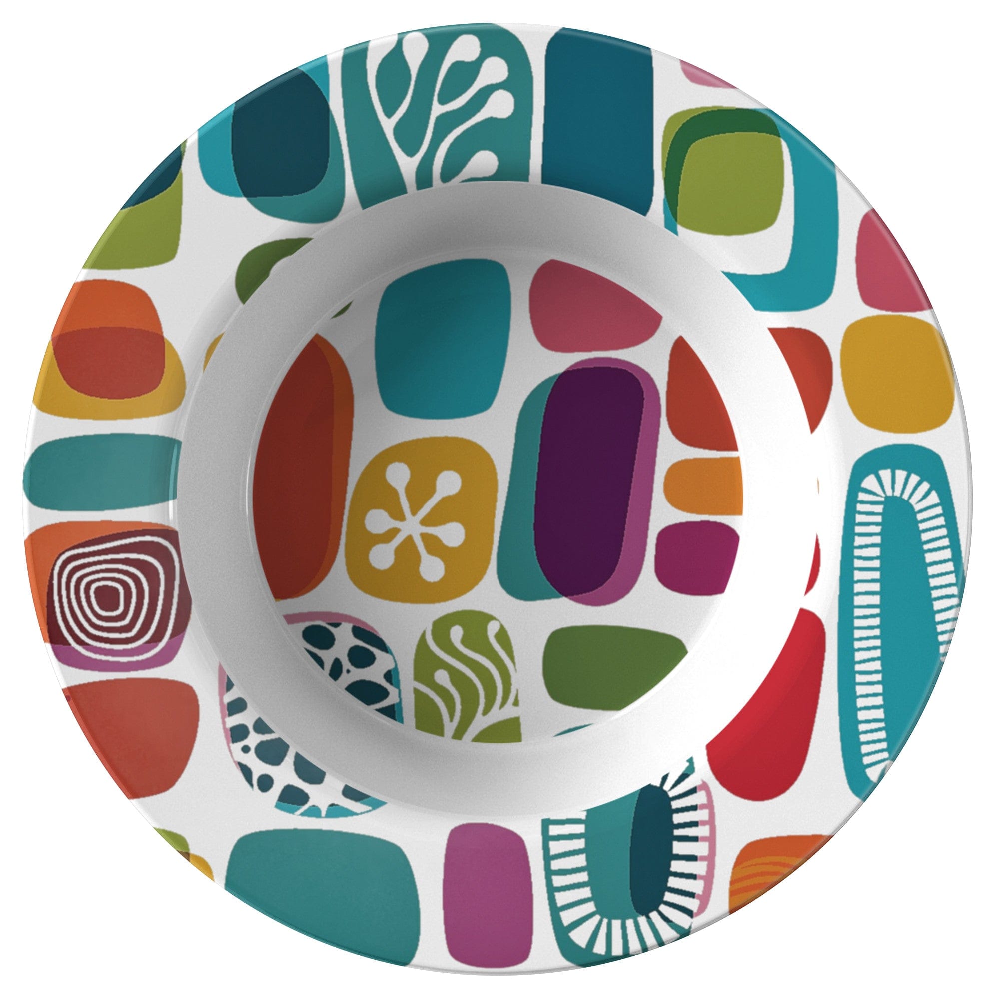 Versetzen Sie sich mit dieser Schale mit abstraktem Amöben-Print zurück in die Atomära! Das verspielte, farbenfrohe Design zaubert einen Hauch der 50er Jahre und sorgt für einen Mid-Century-Touch auf Ihrem Tisch.
