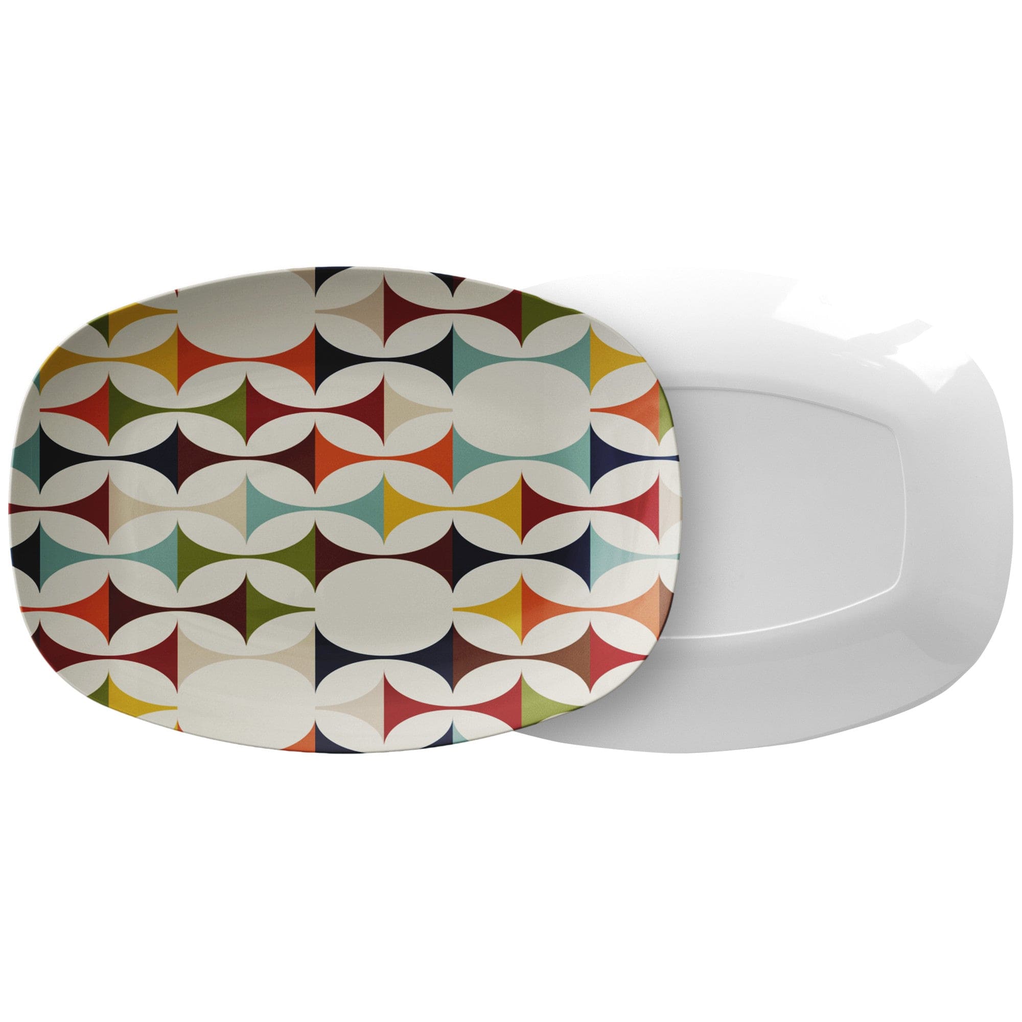 Mid Century Modern Retro Geometrische Servierplatte, 50er Jahre MCM Creme, Teal, Senf und Rost Küchengeschirr Geschenke