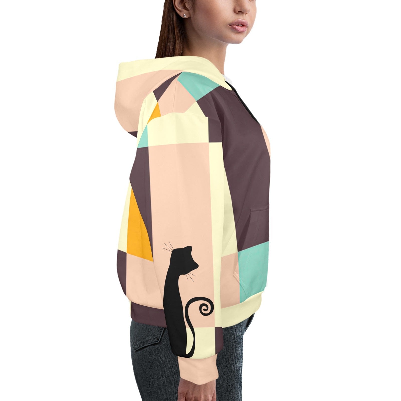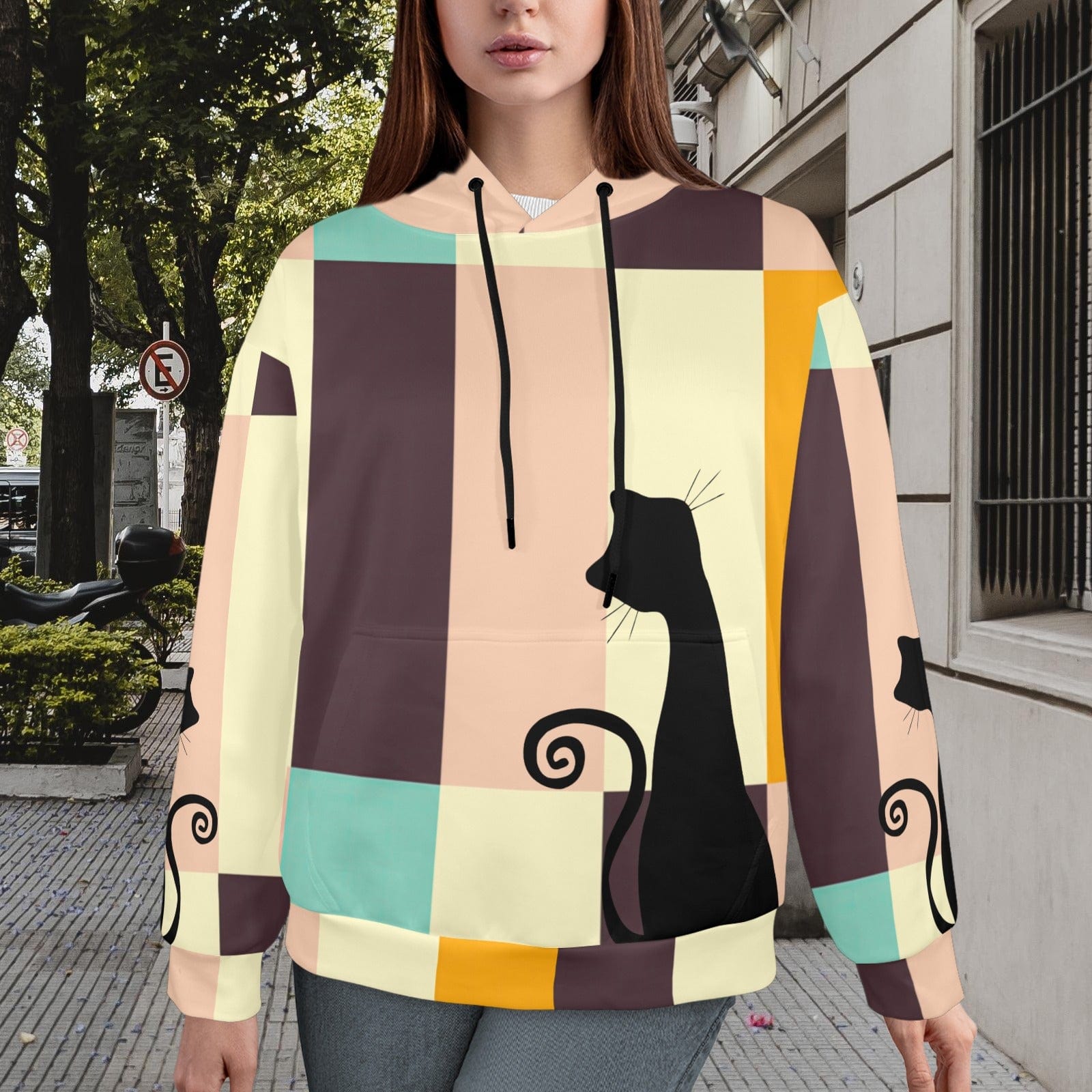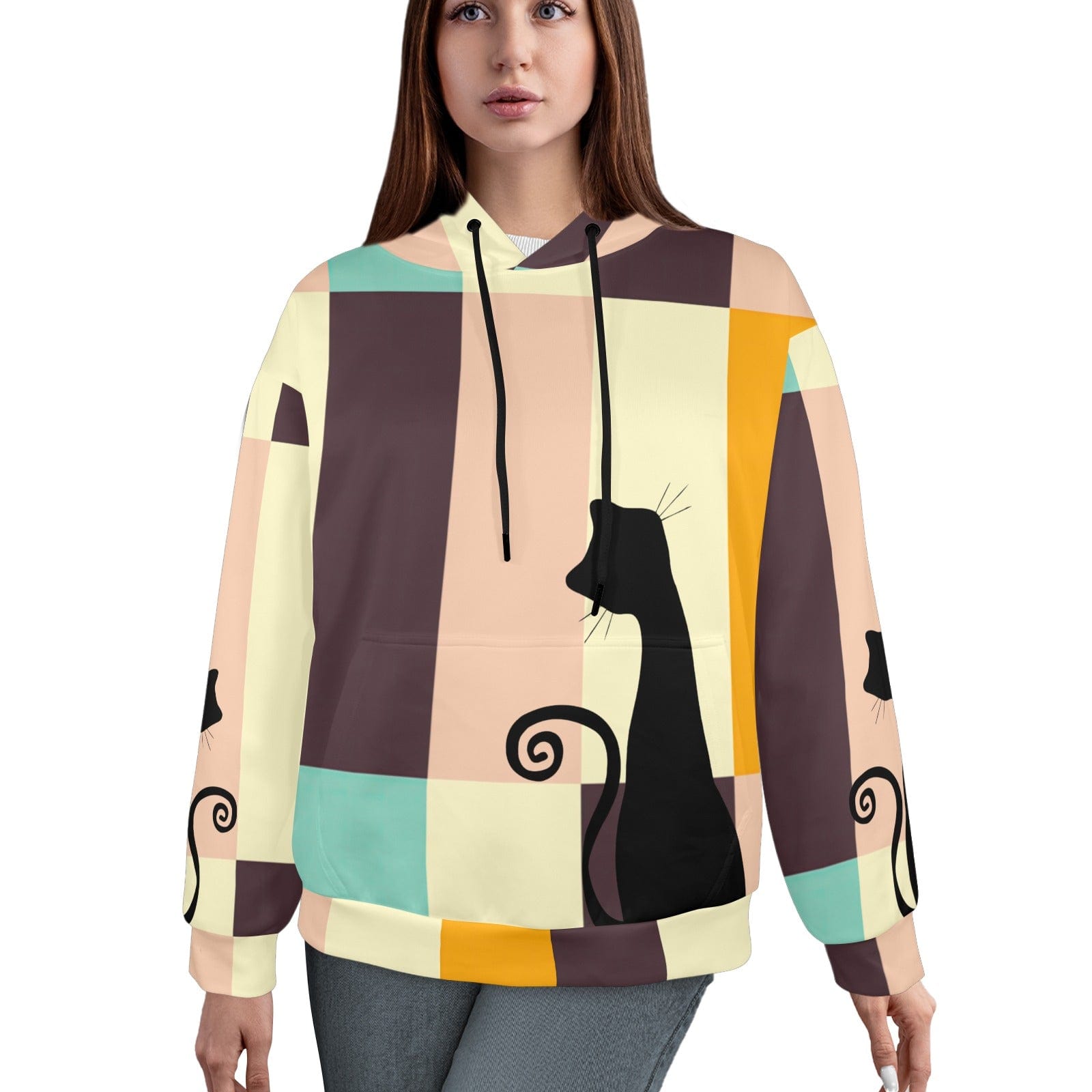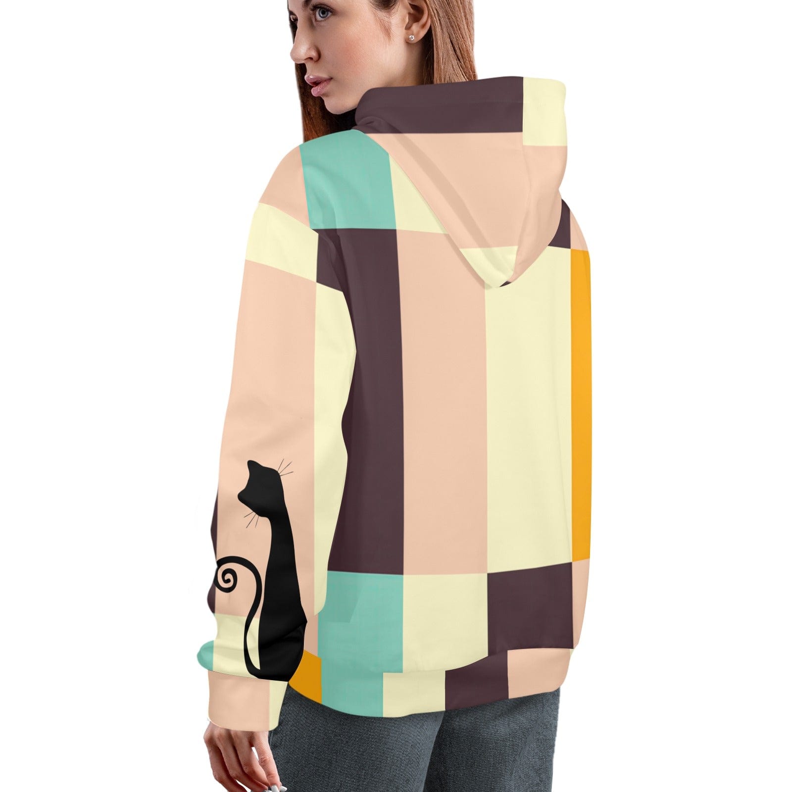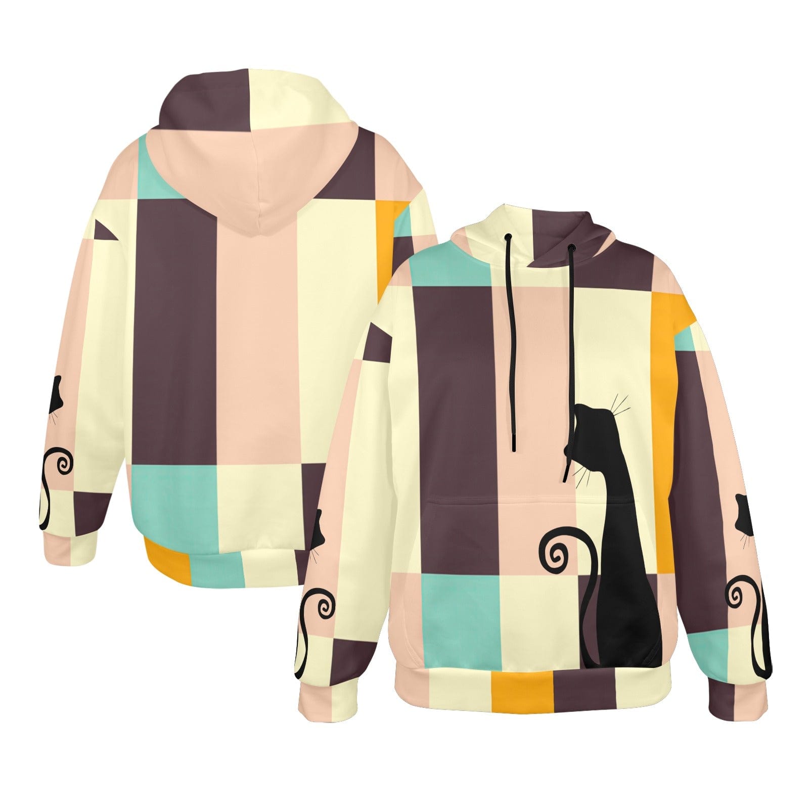 Mid Mod Retro Atomic Cat Hoodie, MCM Pastellblöcke, Schickes 60er Jahre Katzenliebhaber Sweatshirt