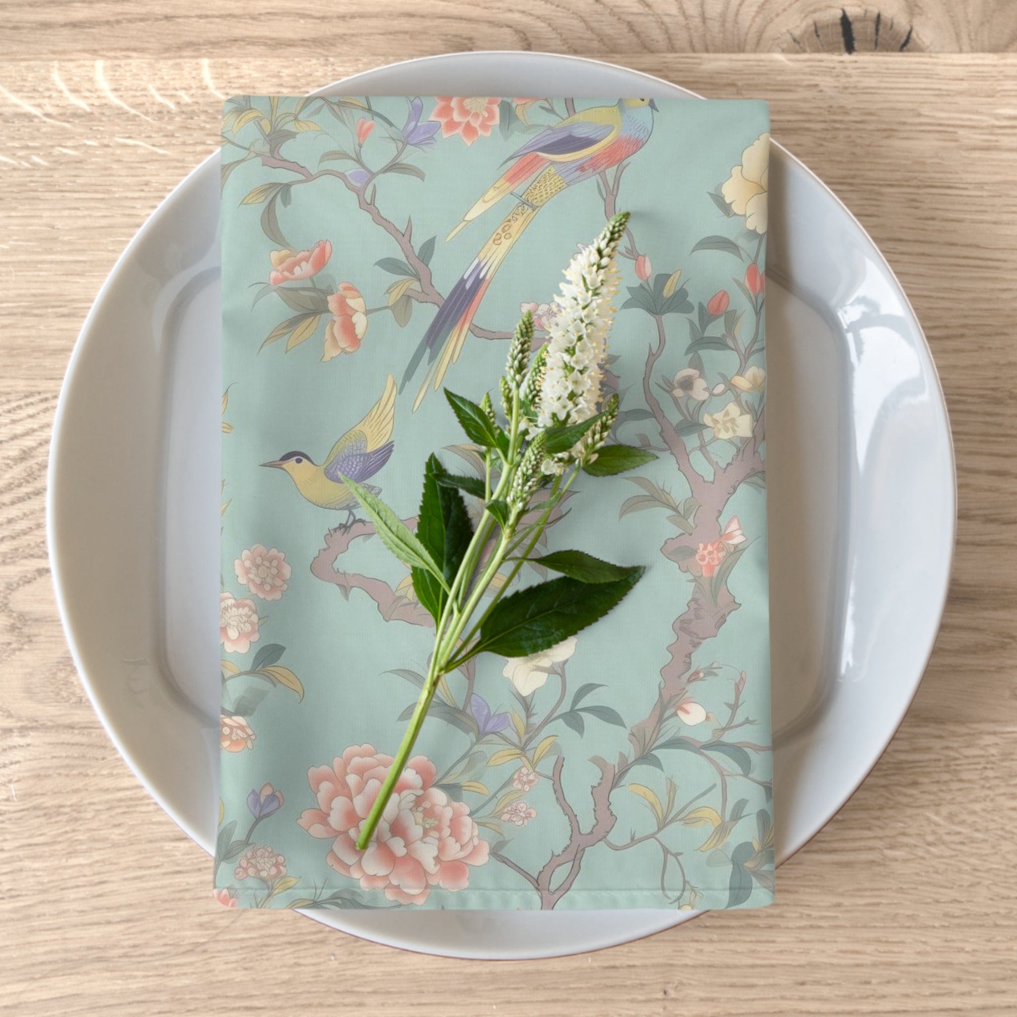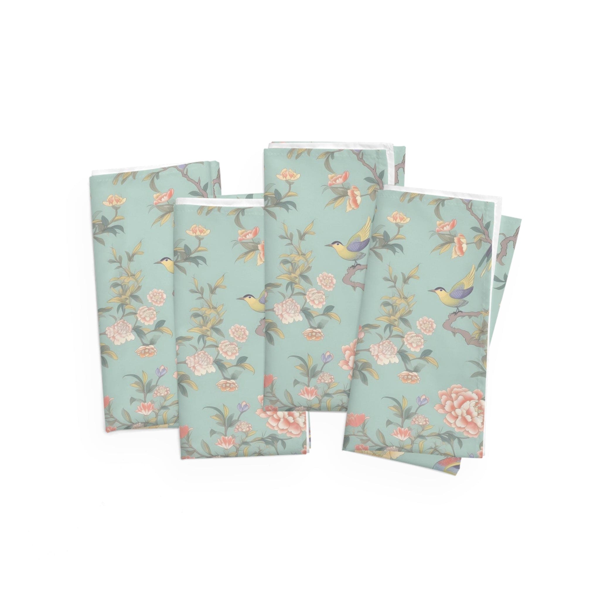 Pastellfarbene Chinoiserie-Stoffservietten, 4er-Set, elegante Tischwäsche mit Blumen- und Vogelmotiv