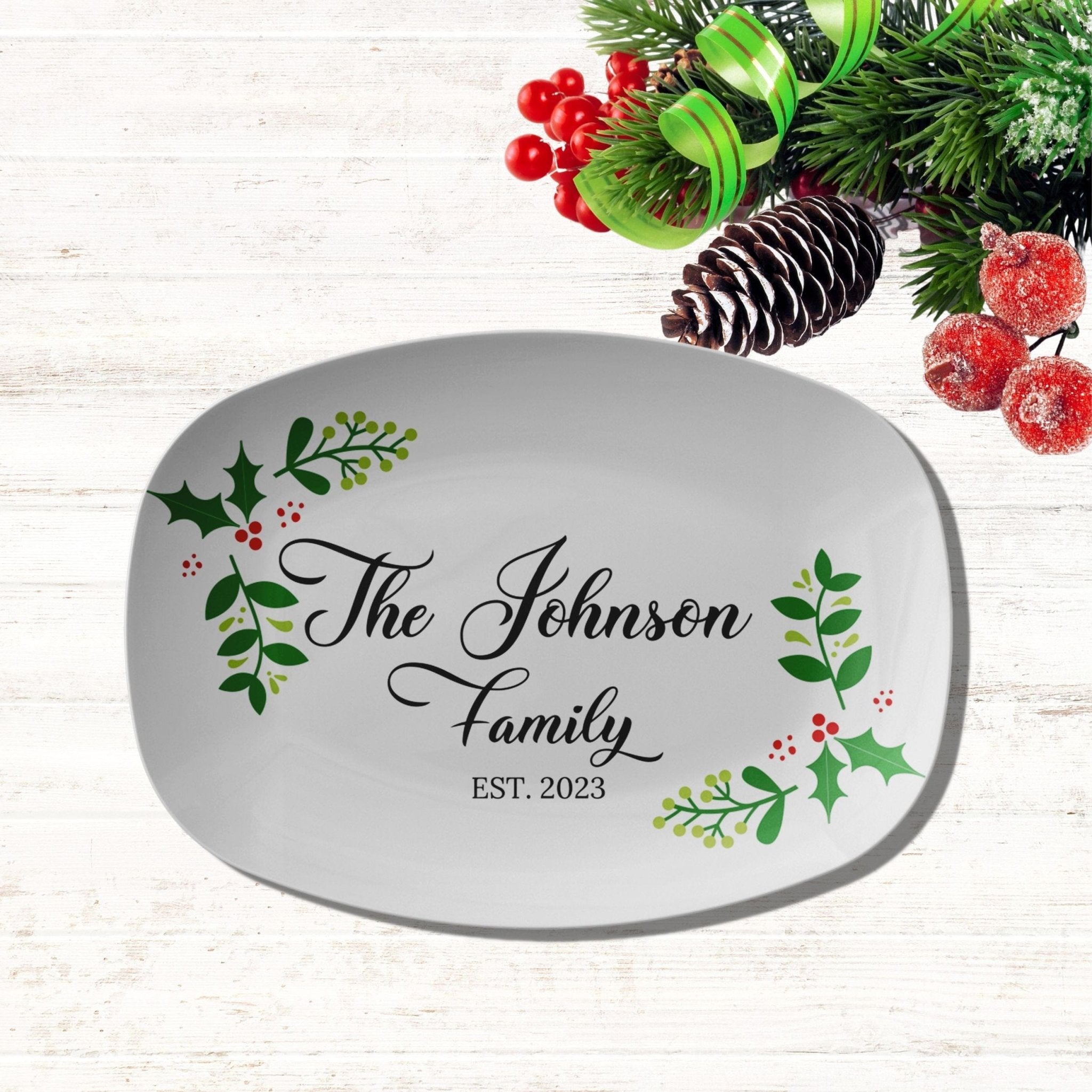 Beeindrucken Sie Ihre Verwandten mit dieser personalisierten Weihnachtsplatte! Mit ihrem festlichen Stechpalmenmotiv und Ihrem Familiennamen in Schreibschrift verleiht sie Ihrem Festtagsbuffet eine persönliche Note. Perfekt zum Servieren Ihrer liebsten Weihnachtsleckereien – wir können nicht versprechen, dass Ihre Familie sich nicht darum streiten wird!