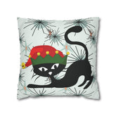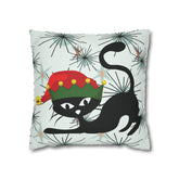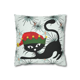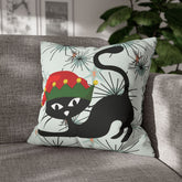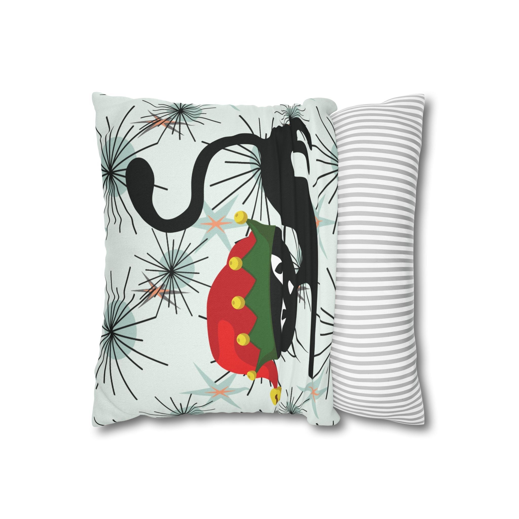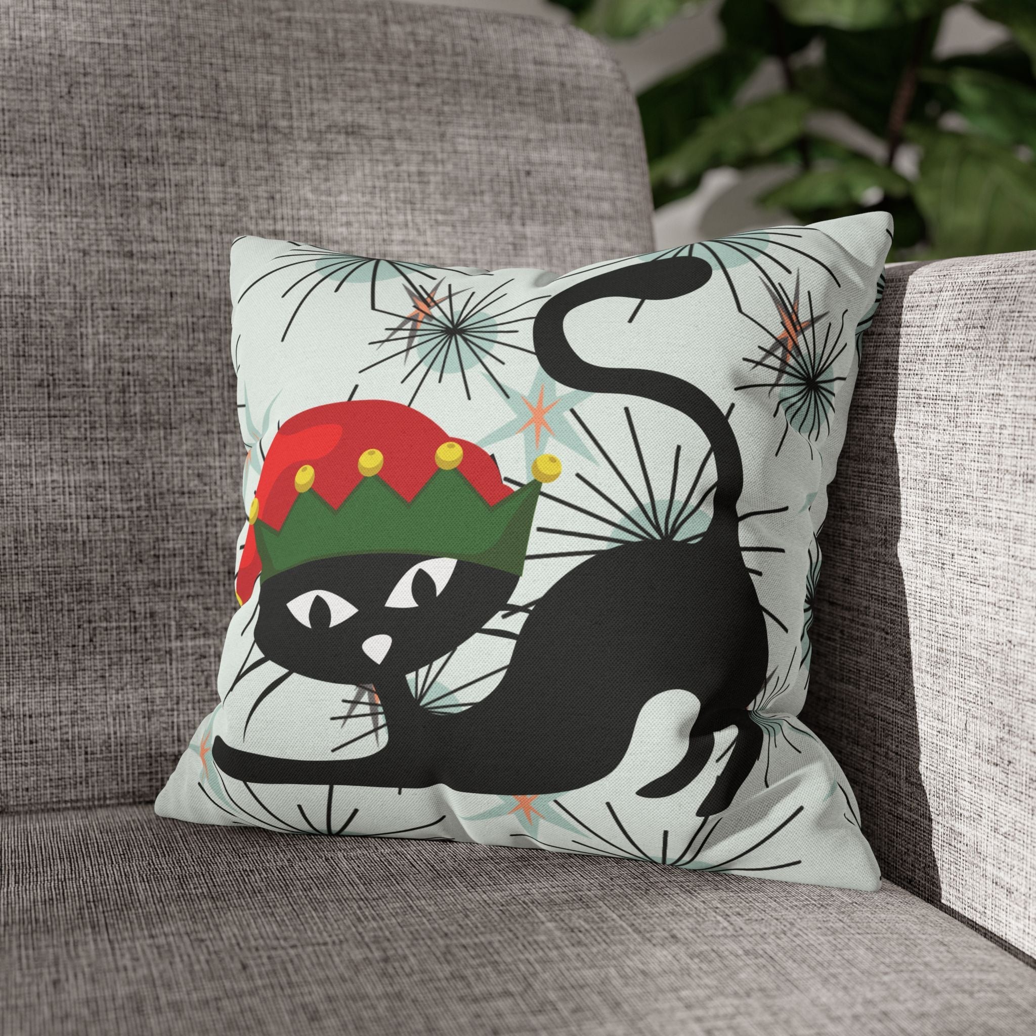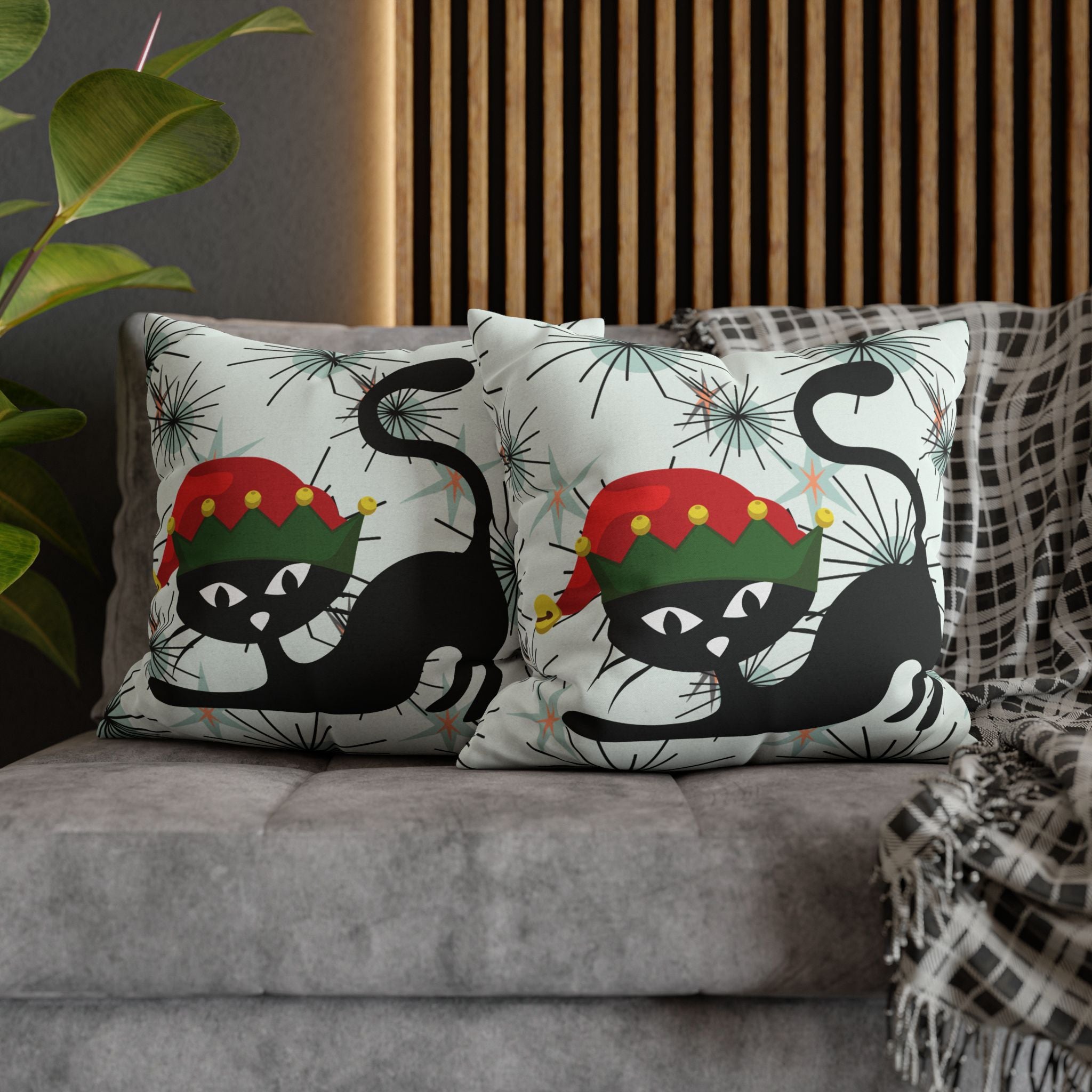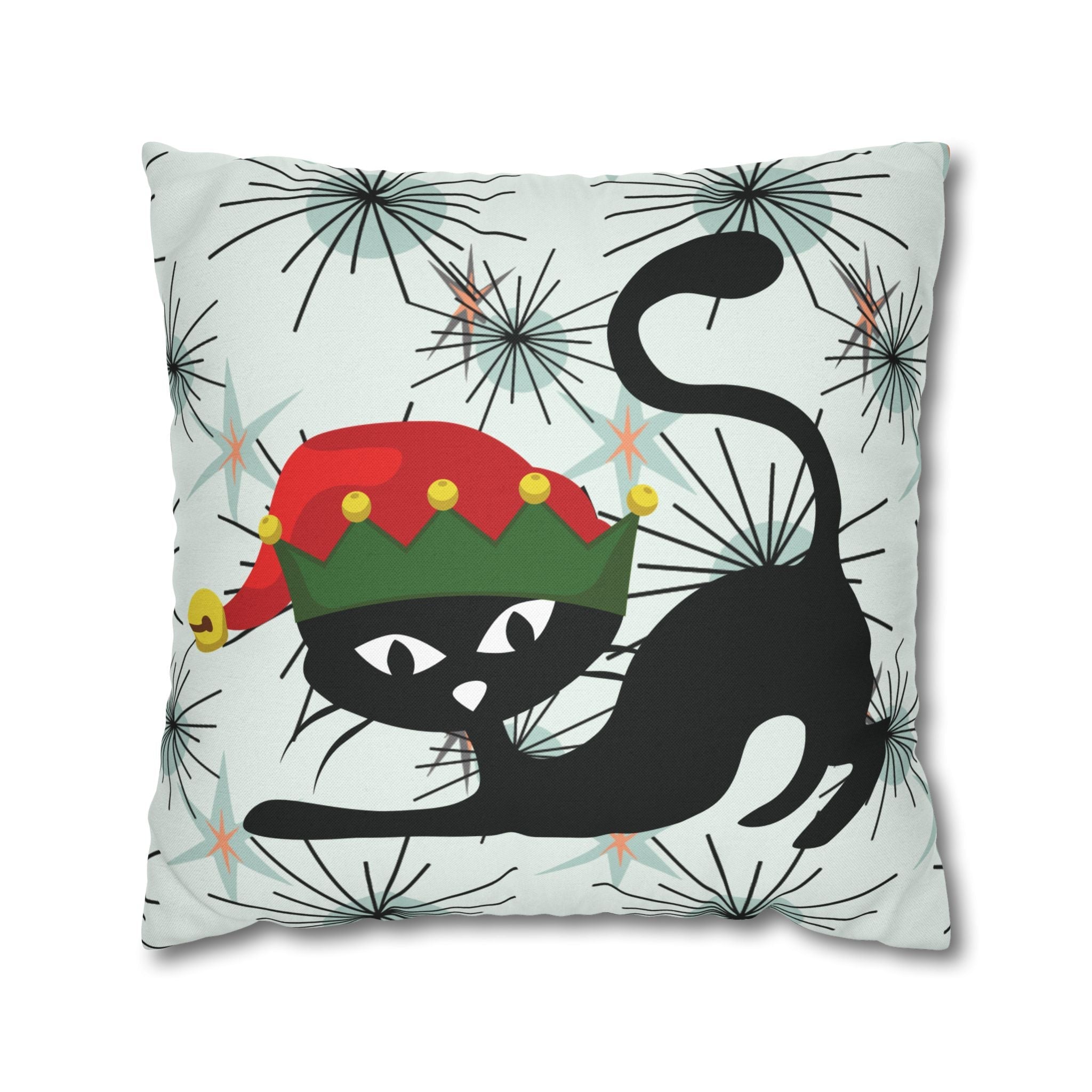 Kissenbezug, Atomic Cat Mid Century Modern Weihnachtskissenbezug, Retro Starburst Weihnachtsdeko, 50er Jahre Kitsch Schwarze Katze Elfe Kissenbezug