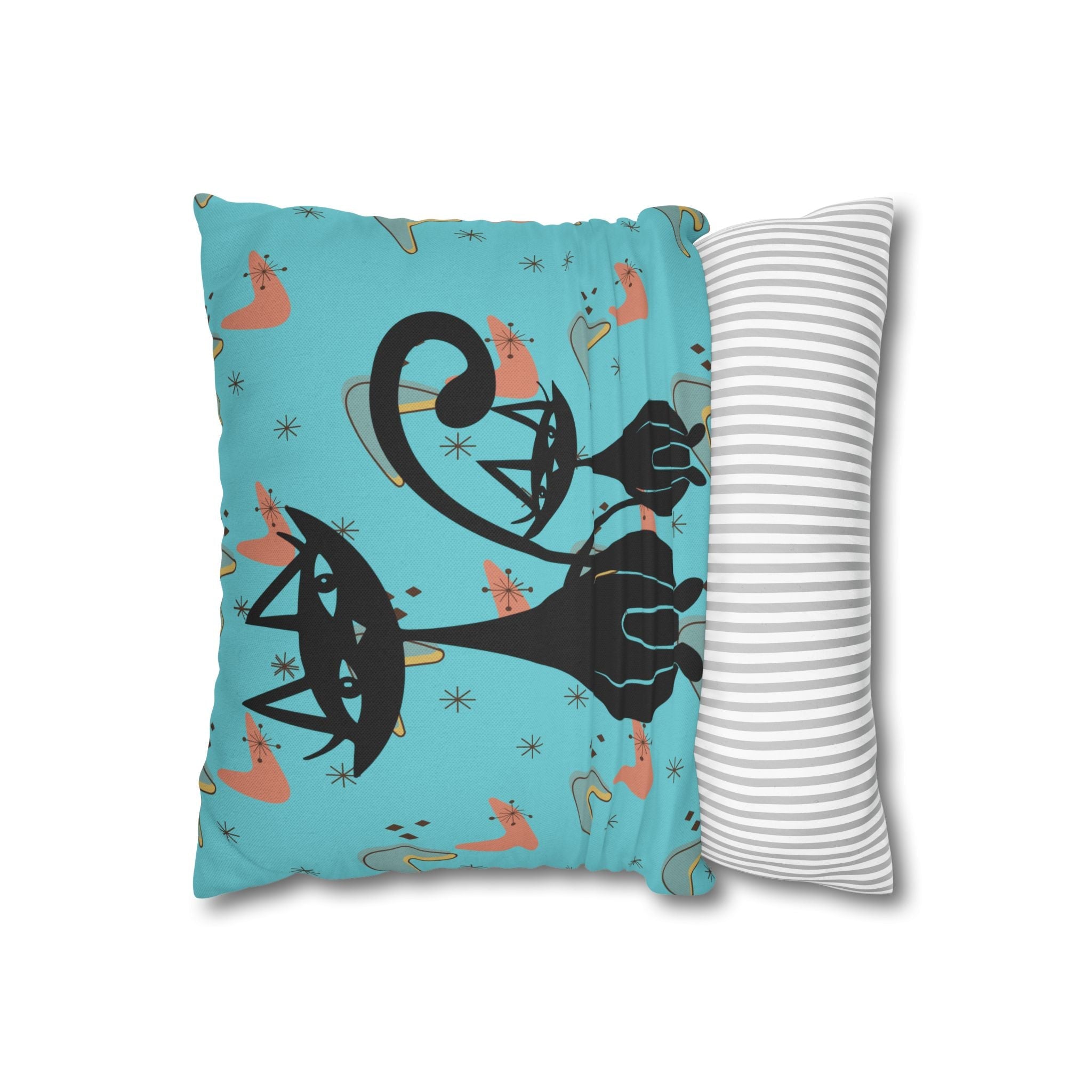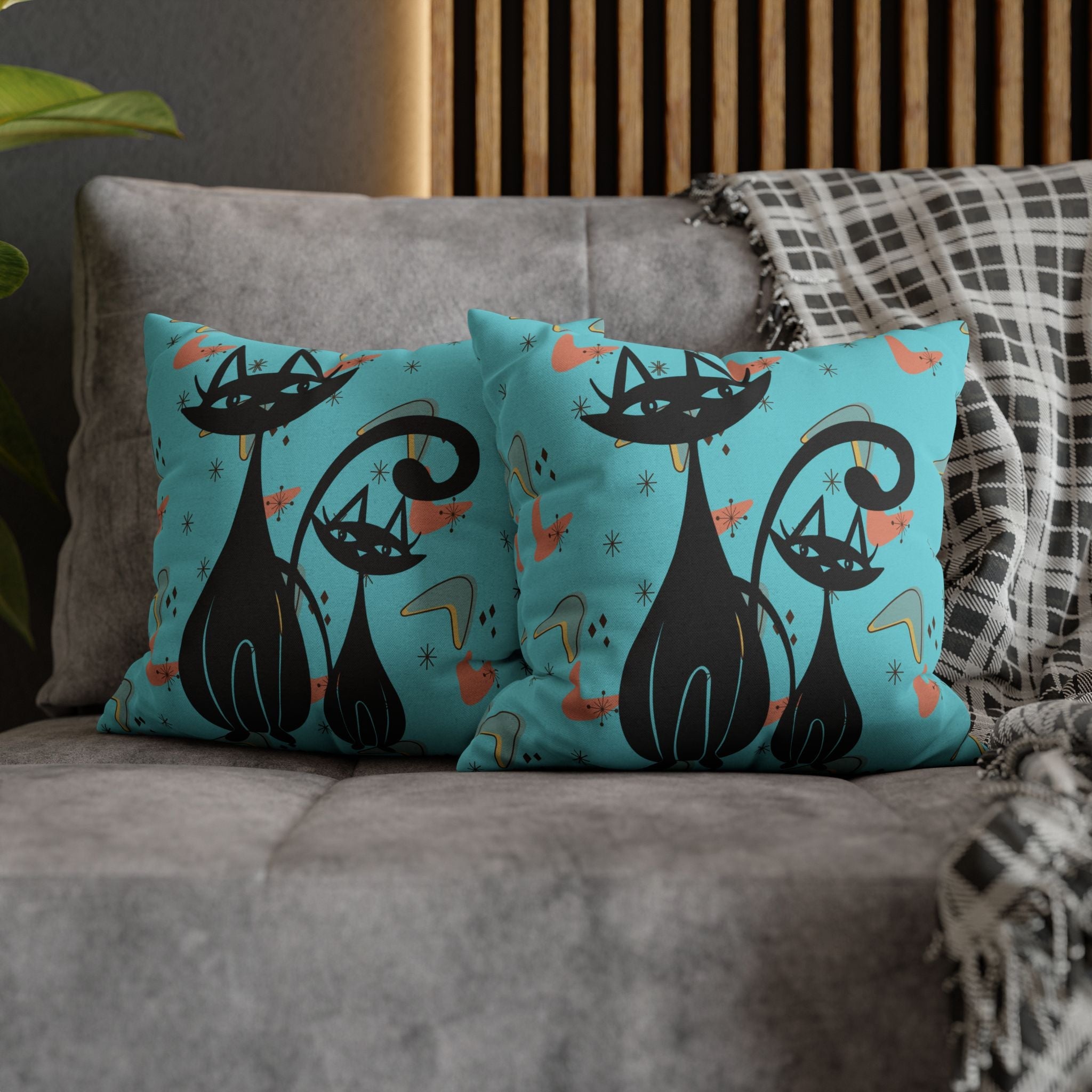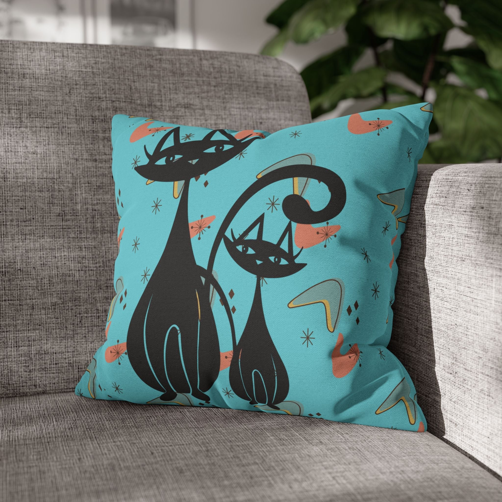 Kissenbezug, Atomic Cat Mid Century Modern Kissenbezug, Retro Boomerang und Starburst Design, 50er Jahre Stil Teal MCM Kissenbezug