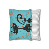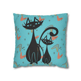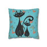 Verleihen Sie Ihrer Wohnkultur mit diesem verspielten und stilvollen Kissenbezug mit Retro-Atomkatzen-Design einen Hauch von Verspieltheit. Die modernen Bumerang- und Sternenmuster in Blaugrün aus der Mitte des Jahrhunderts verleihen jedem Raum 50er-Jahre-Flair. Werten Sie Ihr Interieur mit diesem einzigartigen und lustigen Kissenbezug auf.