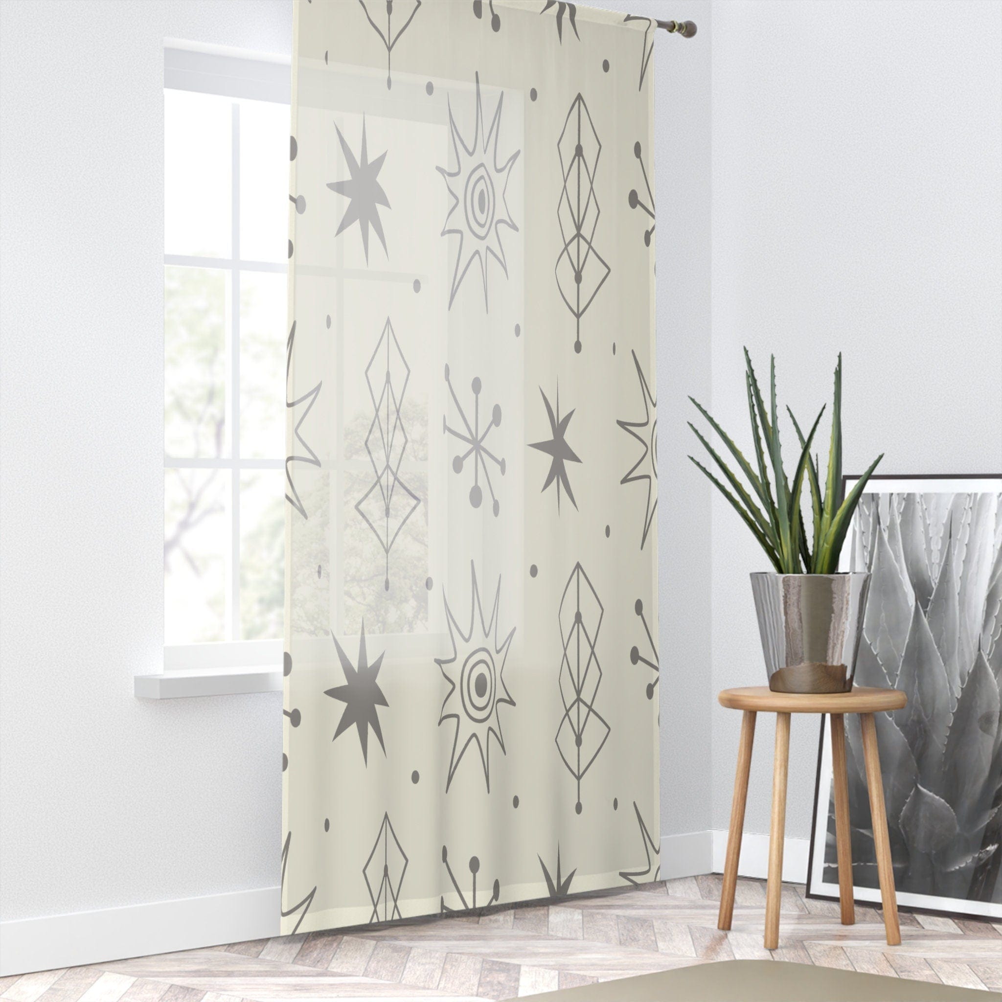Retro 50er Jahre Fenstervorhänge, Mid Century Modern Atomic Starburst Beige, Grau Blackout oder Sheer Curtain Panels