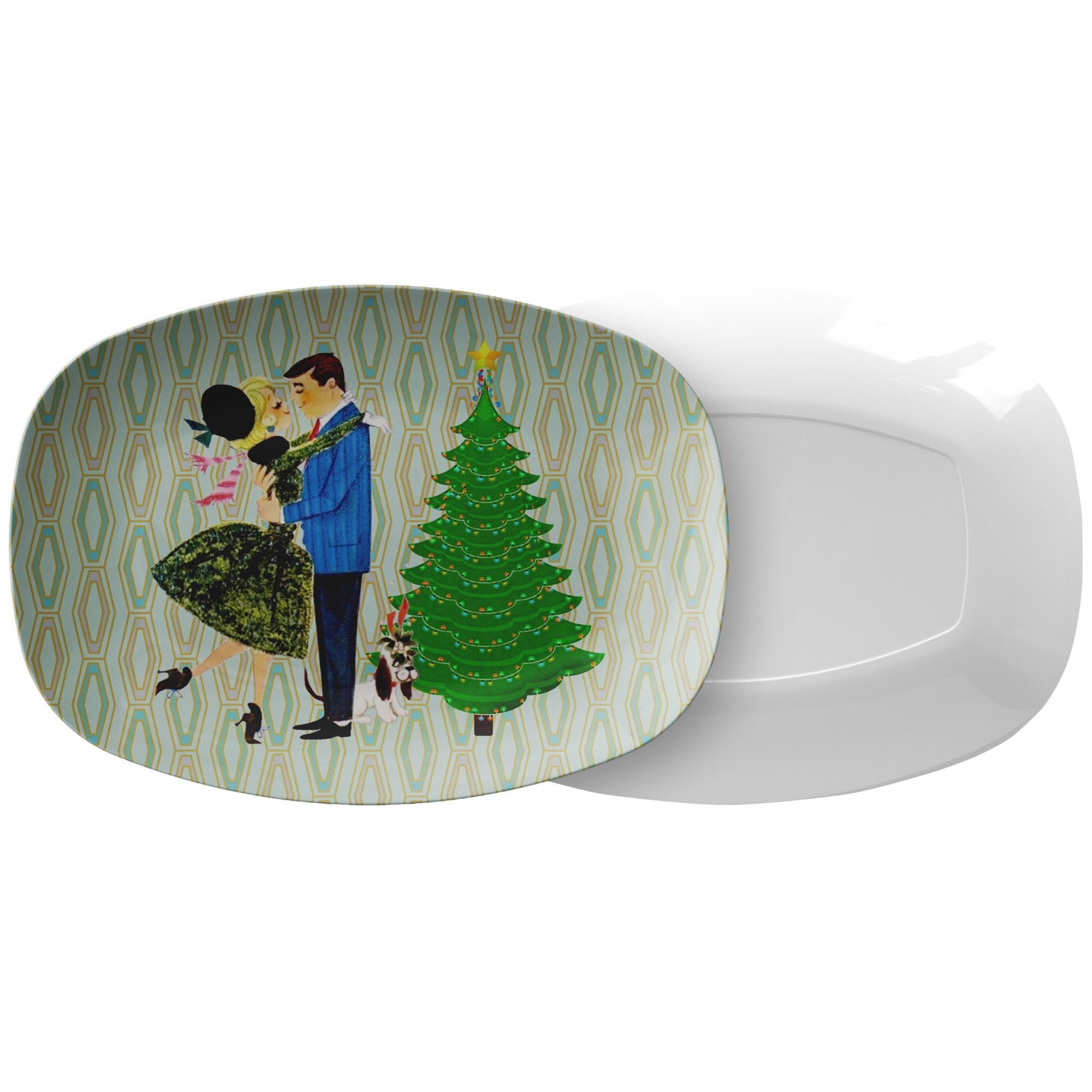 Retro 1950er Kitsch Weihnachtspärchen Platte, Mid Century Modern Weihnachts Serviertablett, MCM Atomic Weihnachtsdekor