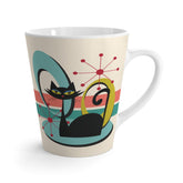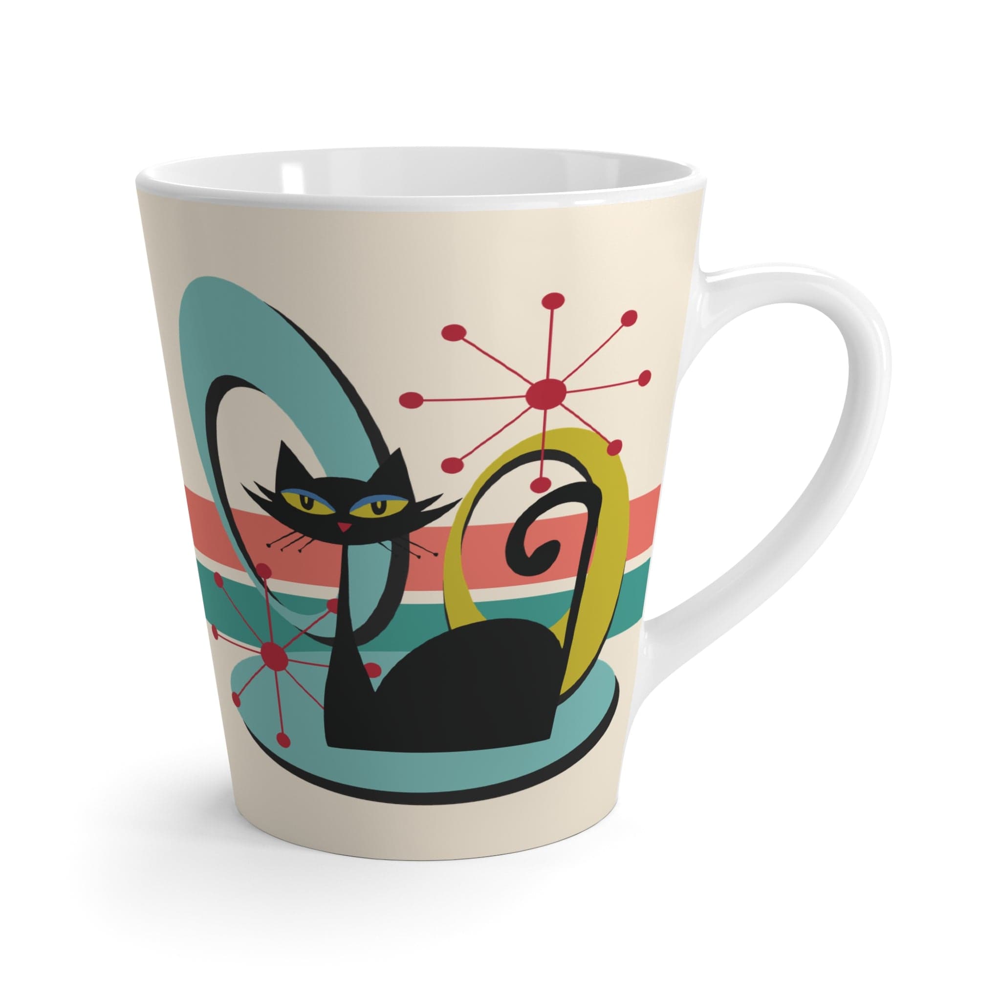 Retro Atomic Cat Latte Tasse, Mid Century Modern Kaffeetasse, MCM Teal, Beige, Koralle Trinkgeschirr