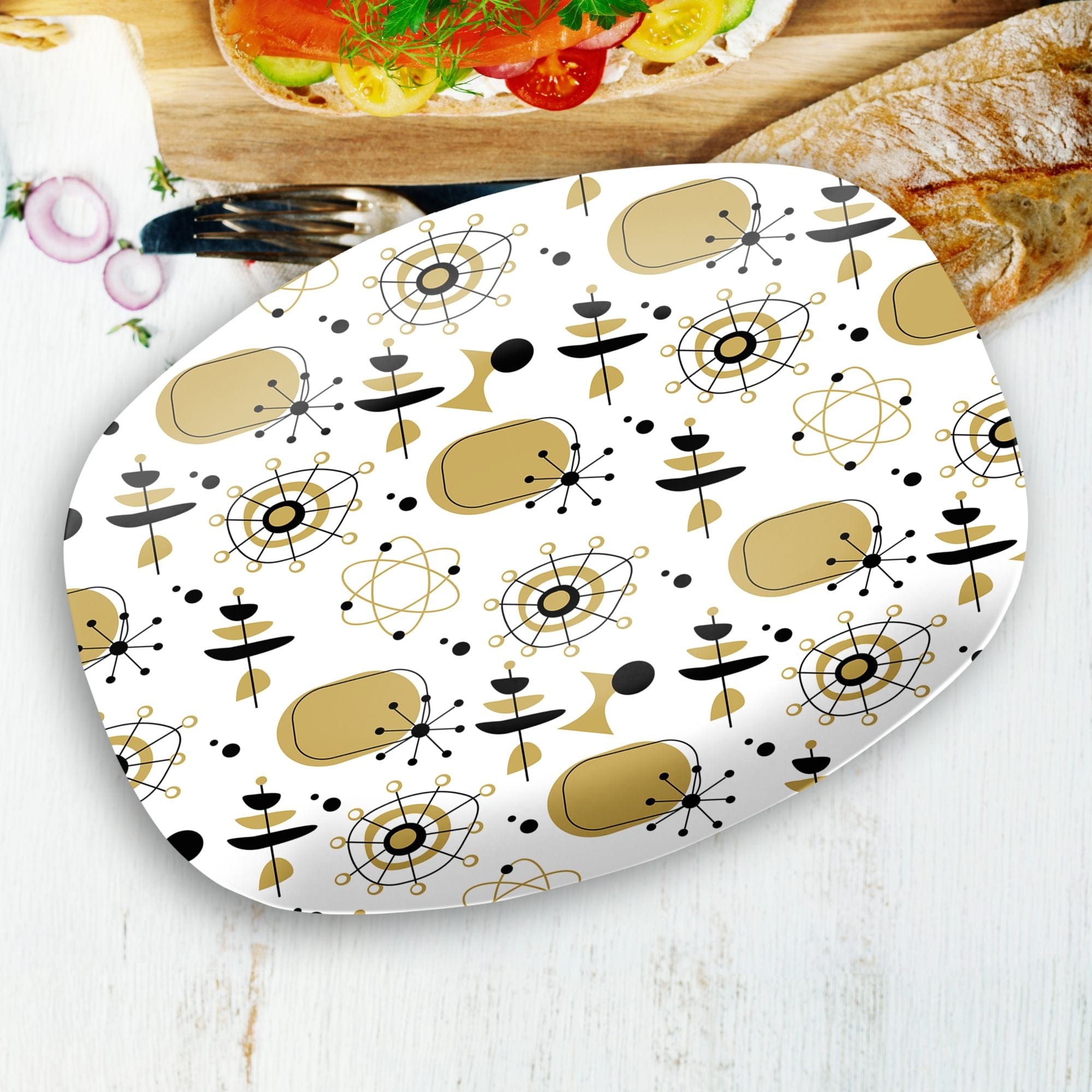 Retro Atomic Sputnik Servierplatte, Mid Century Modern Party Tablett