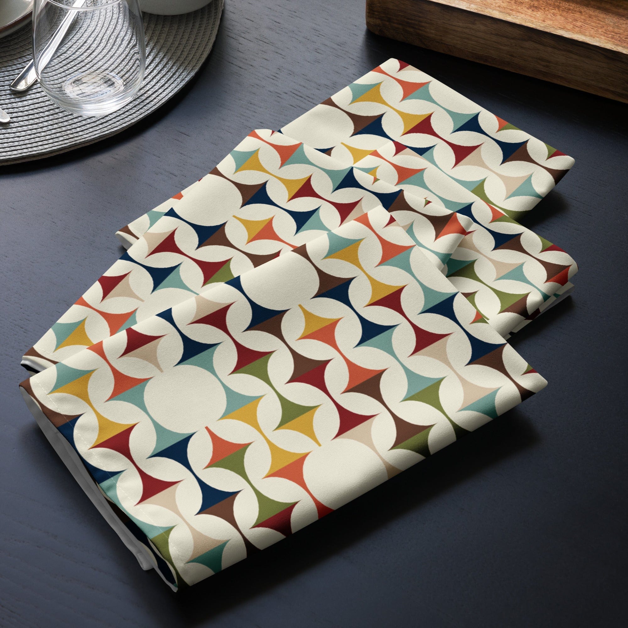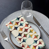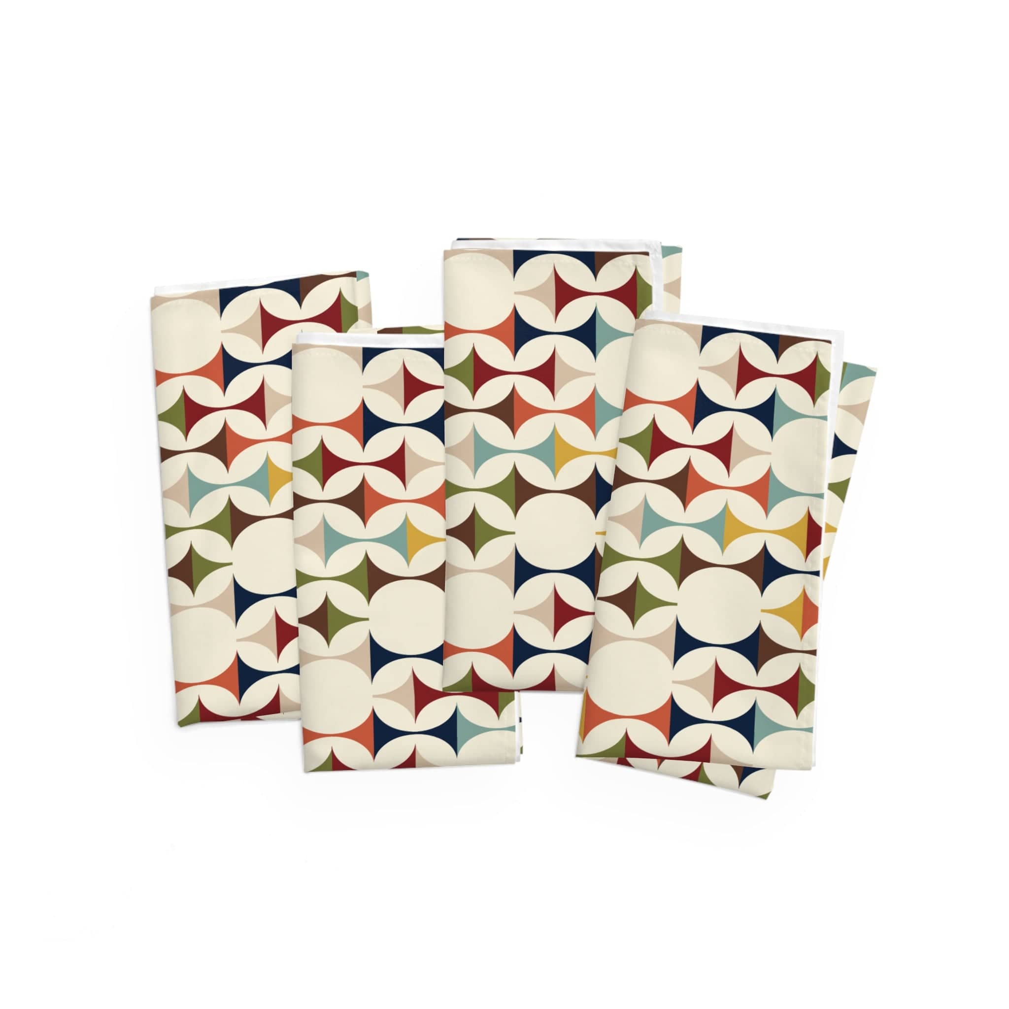 4er Set Mid Century Modern Retro Geometrische Servietten, 50er MCM Tischwäsche in Creme, Teal, Senf und Rost