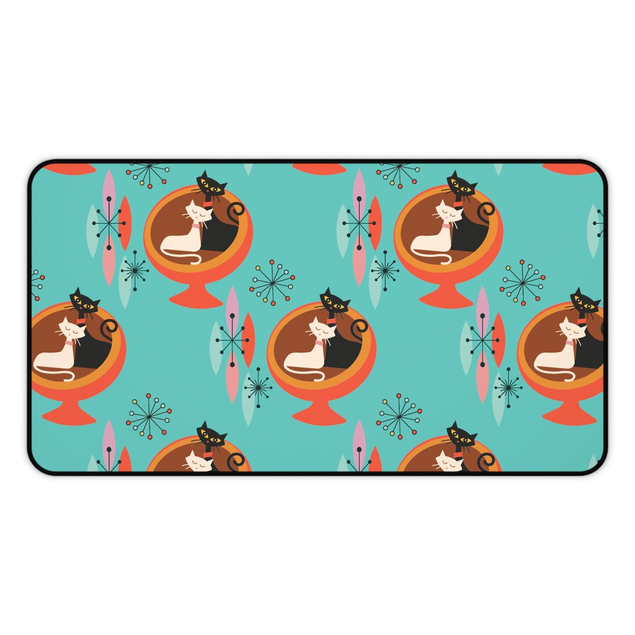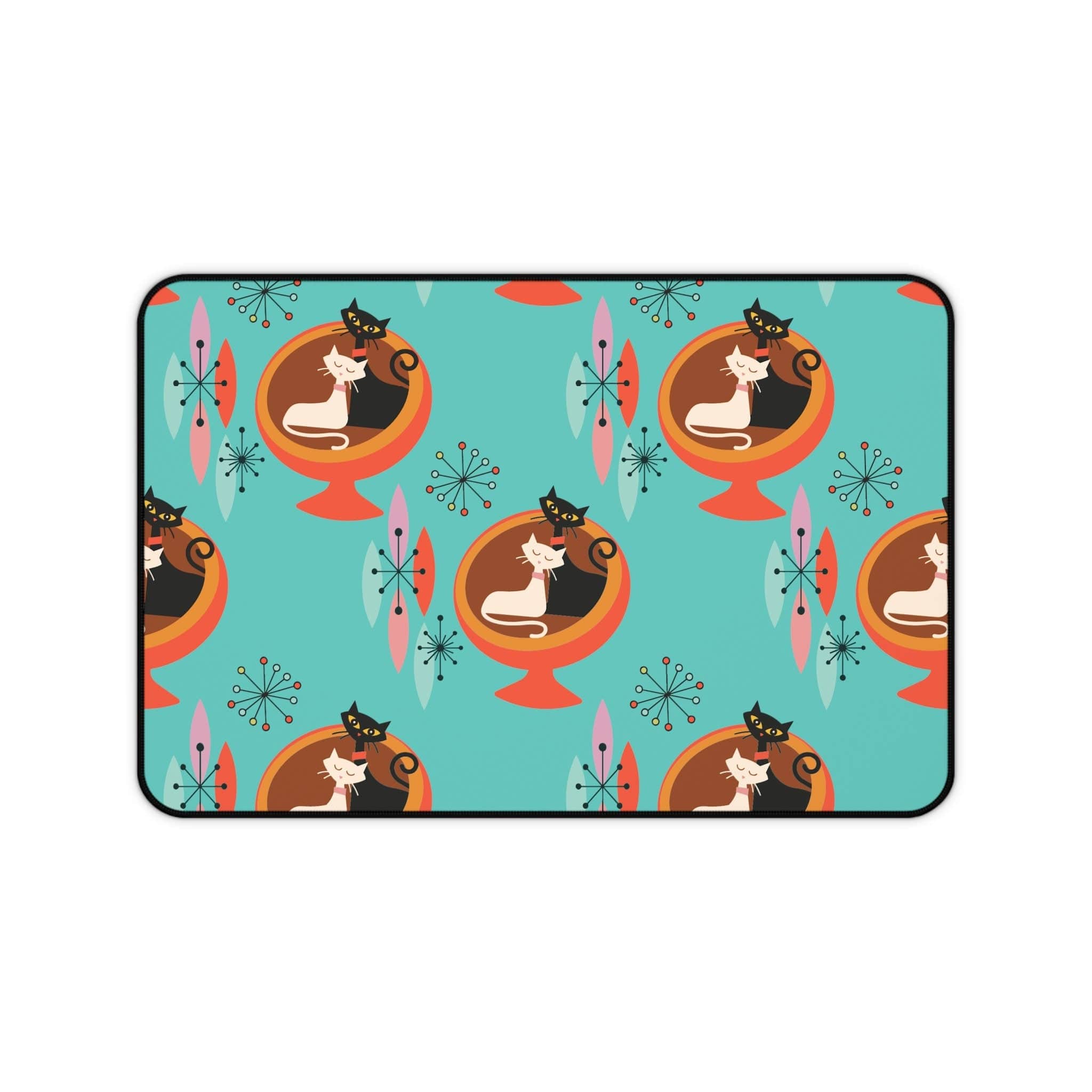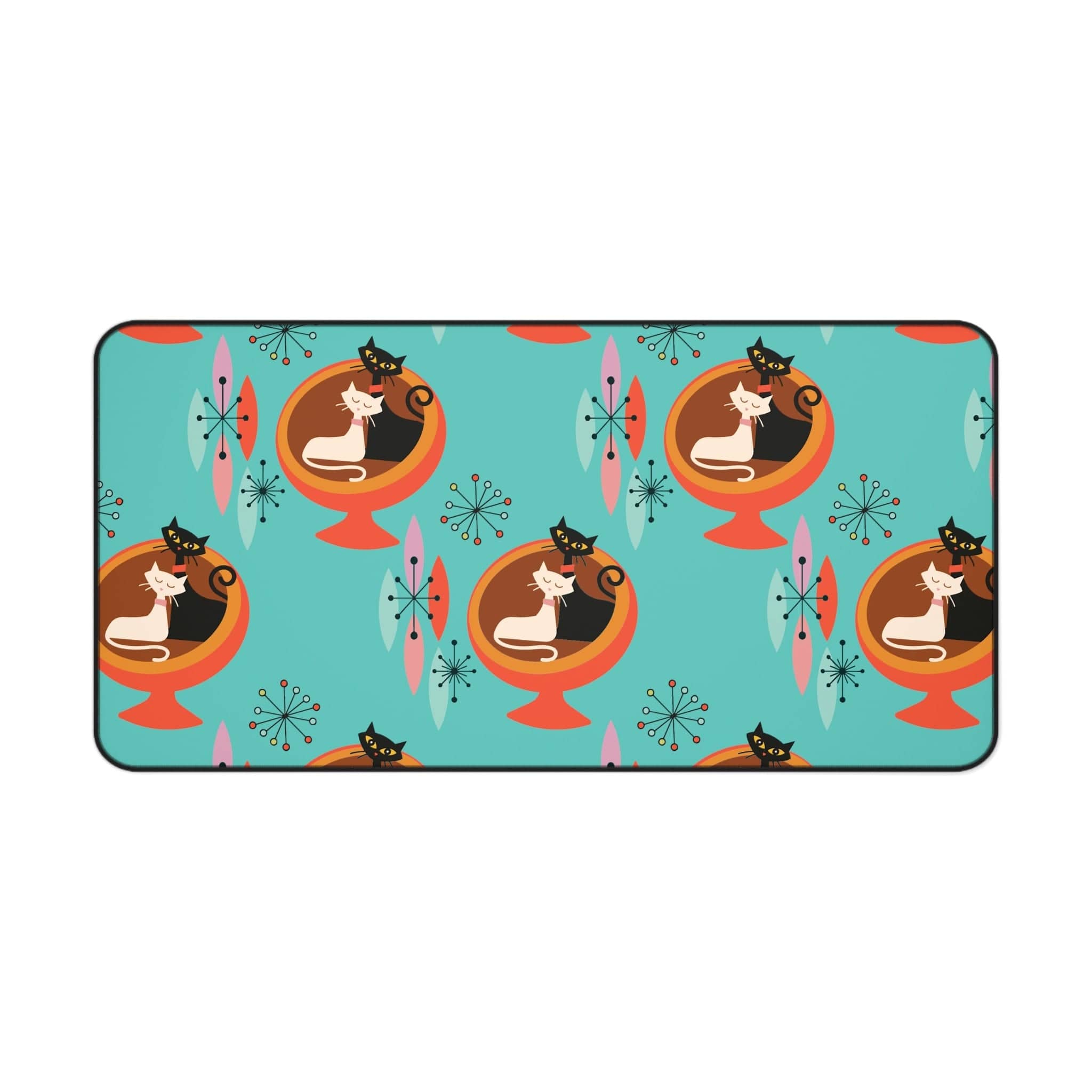Sputnik Atomic Cat Schreibtischmatte, Mid Century Modern Aqua Blau, Orange Retro Büroaccessoires
