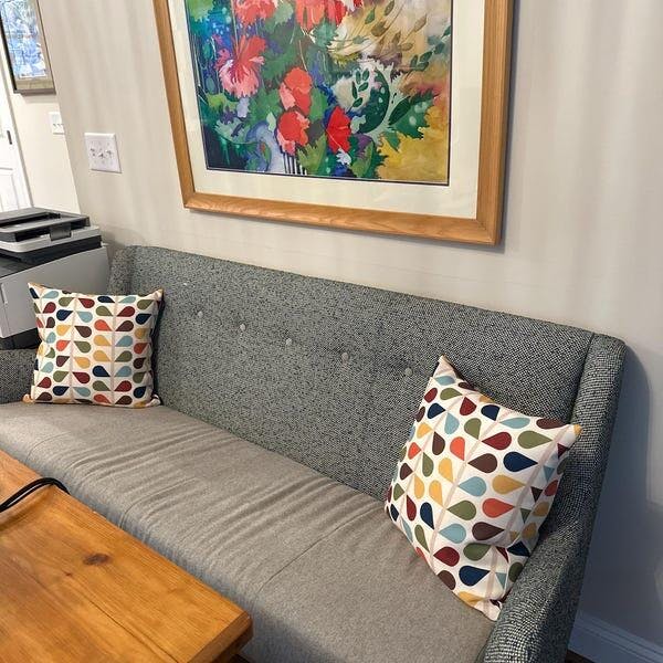 Add a splash of groovy charm to your space Mid Century Modern 50s Floral Throw Pillow, where 1950s design meets modern comfort! This pillow boasts a crisp geometric pattern that dances across the fabric in a vintage color palette, infusing your space with a playful yet sophisticated vibe. It's the ideal choice for a splash of nostalgic charm, adding a retro twist to your contemporary nest. Let this classic beauty pillow up your style quotient and bring a smile to your face every time you walk in the room!