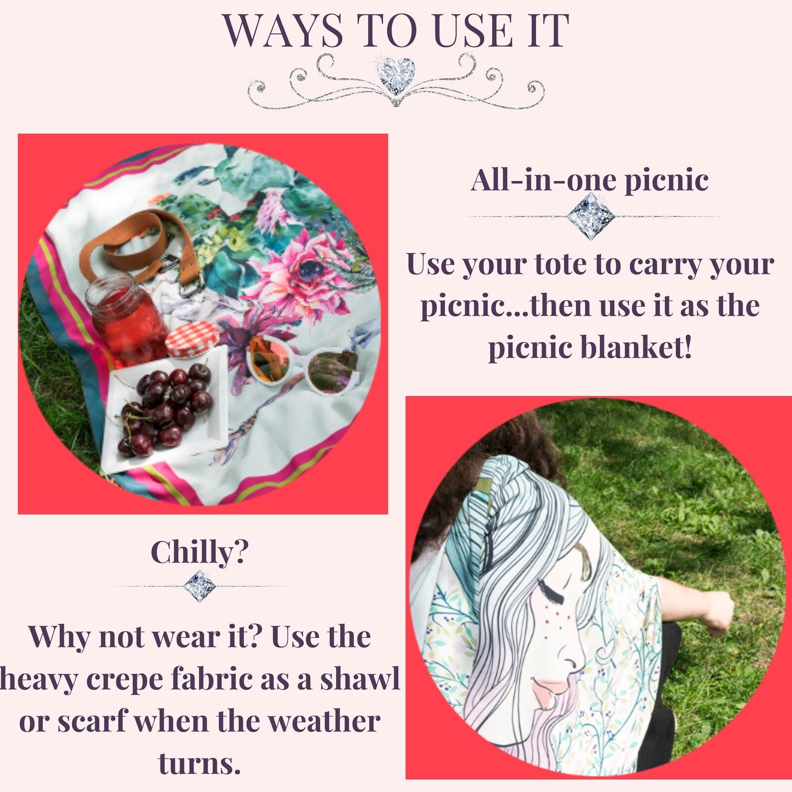 While we call it the Origami tote, you can fold this origami Poly twill cloth into a tote bag, or use it as an impromptu picnic blanket, scarf, or the most beautiful present wrapping. That’s the beauty of it!