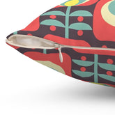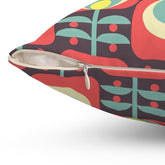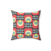 This retro floral throw pillow brings groovy Scandinavian style with its geometric abstract flower pattern. Soft polyester front with concealed zipper closure. The mod design lends mid-century Danish vibes - perfect for adding texture and visual interest to any living room or bedroom!