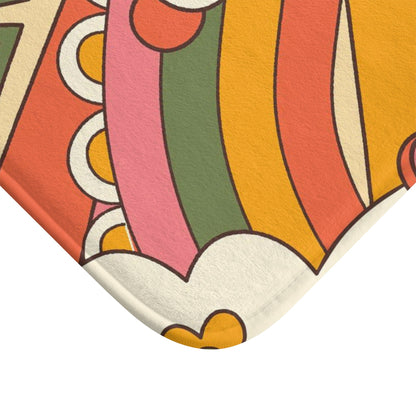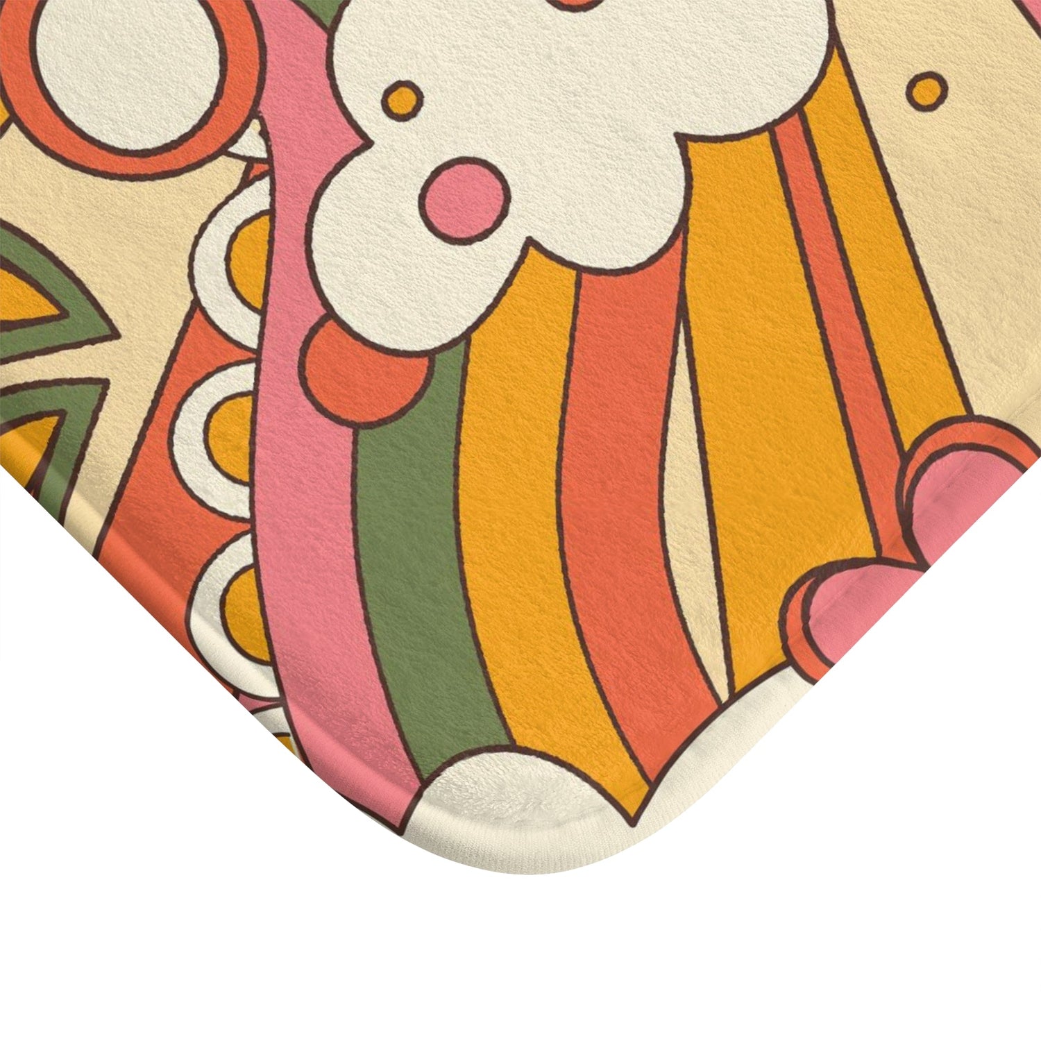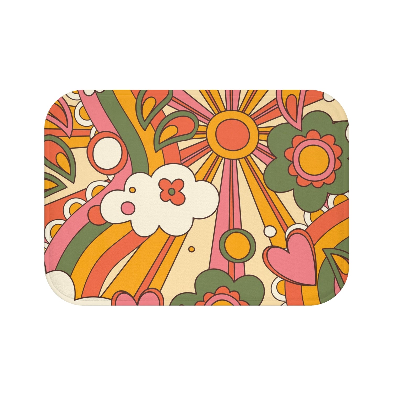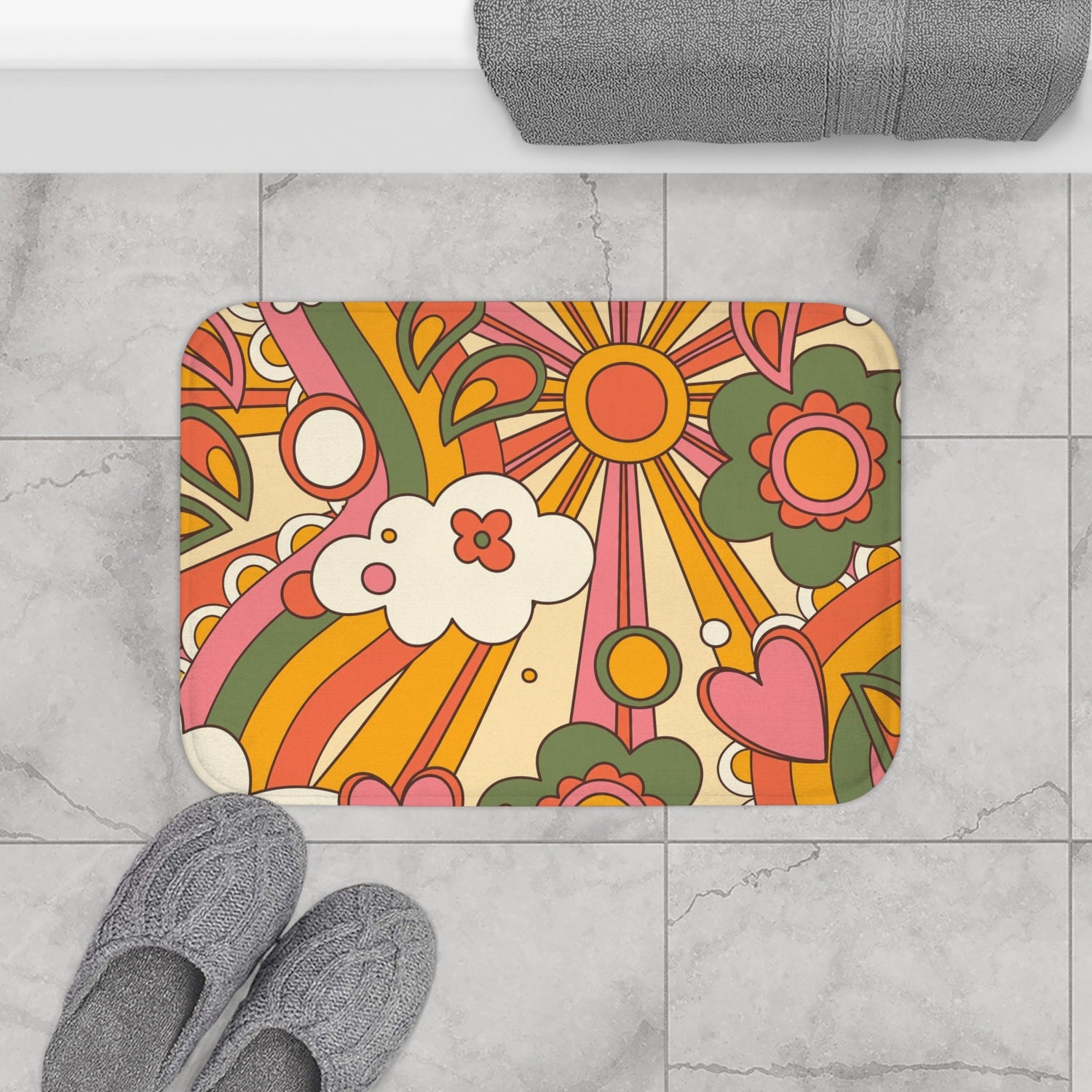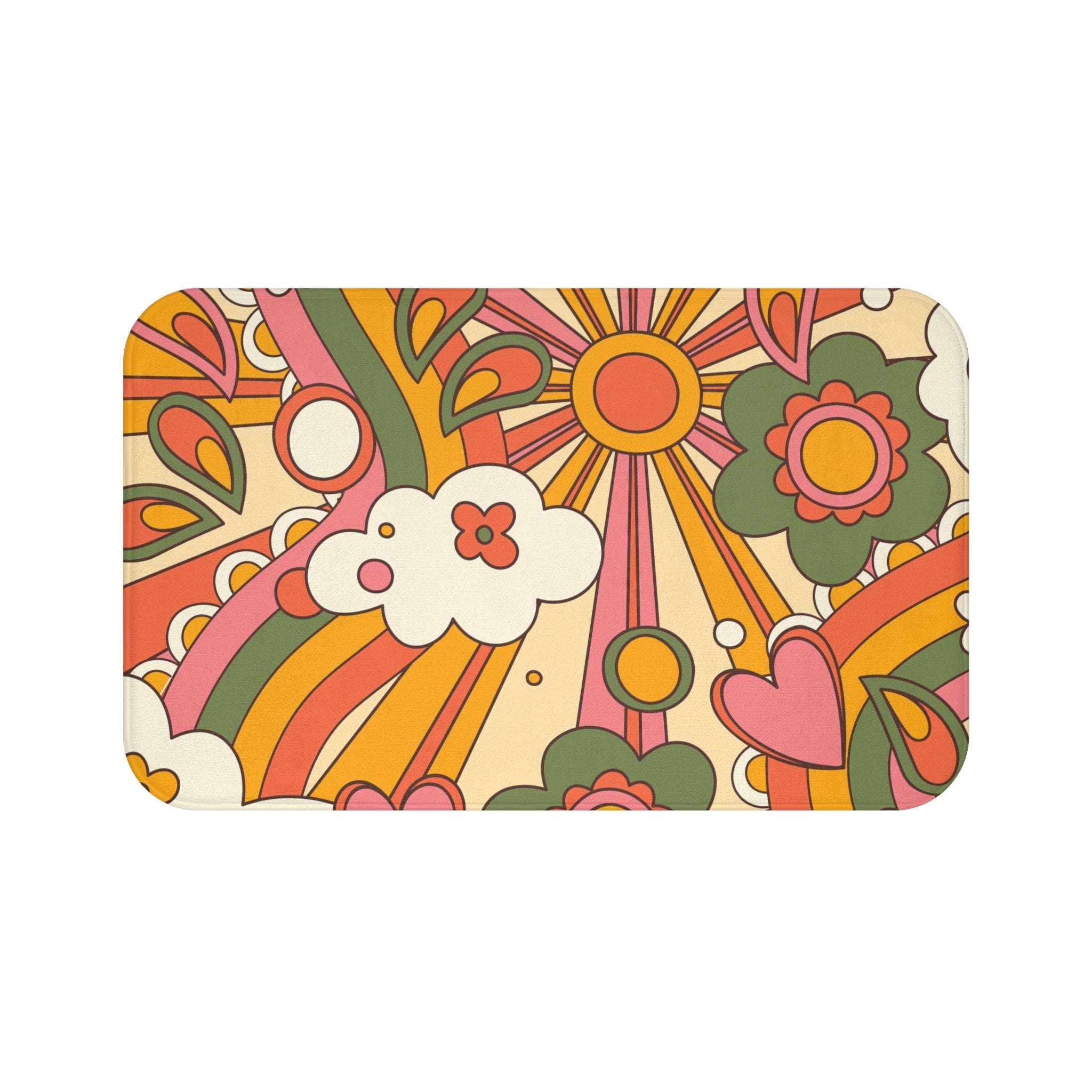 70s Groovy Hippie Retro Sunshine Bath Mat, Mid Mod Flower Power Bathroom Rug, Funky Hipster Mid Century Modern Bathroom Decor