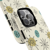 Snap into retro perfection. This Franciscan Starburst iPhone case channels the atomic charm of the 1950s with iconic starbursts and teal orbs. Durable, sleek, and mod—all in one groovy grip.