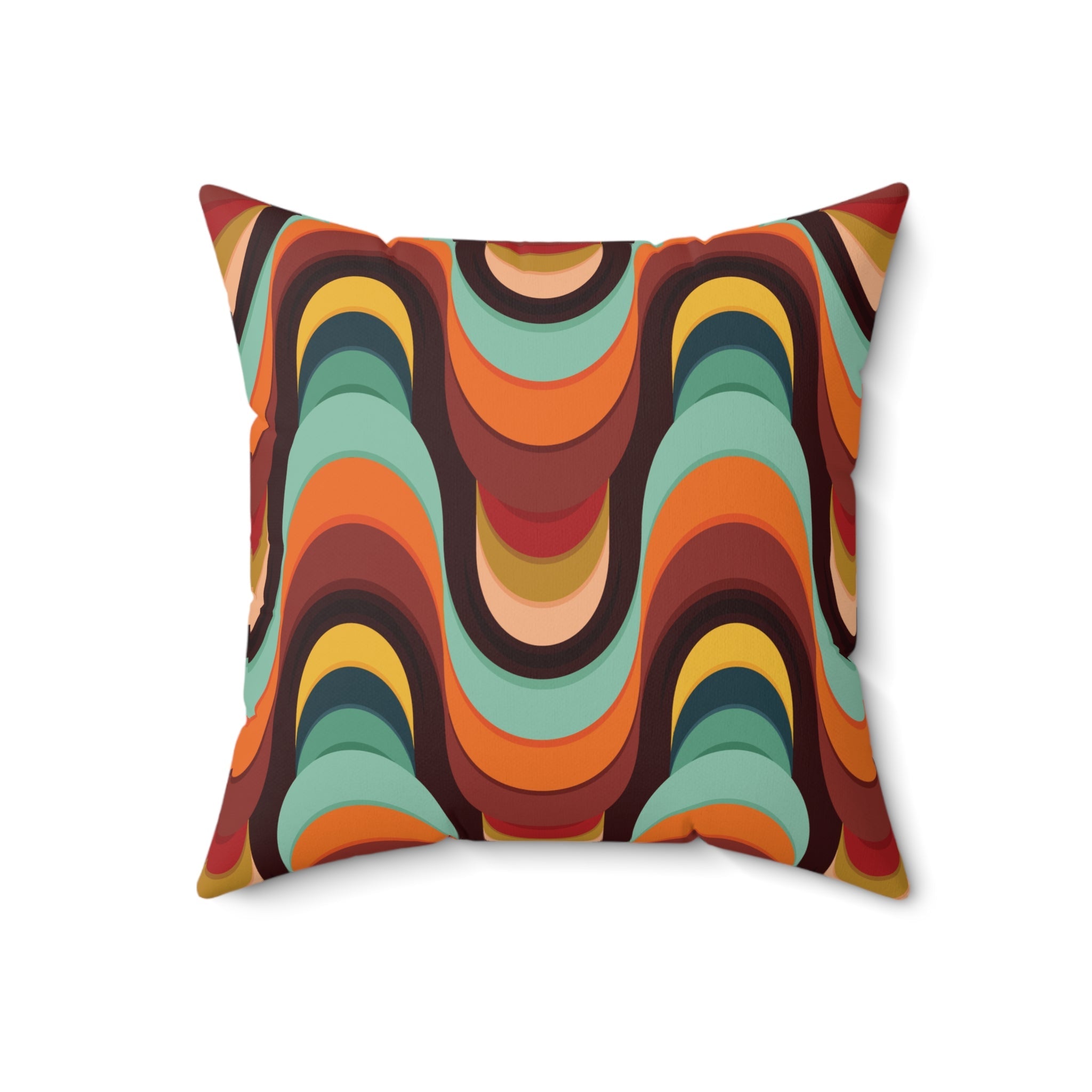 Bring the funk! This retro mod pillow grooves with bold curves and psychedelic style, perfect for turning your space into a 70s time capsule.