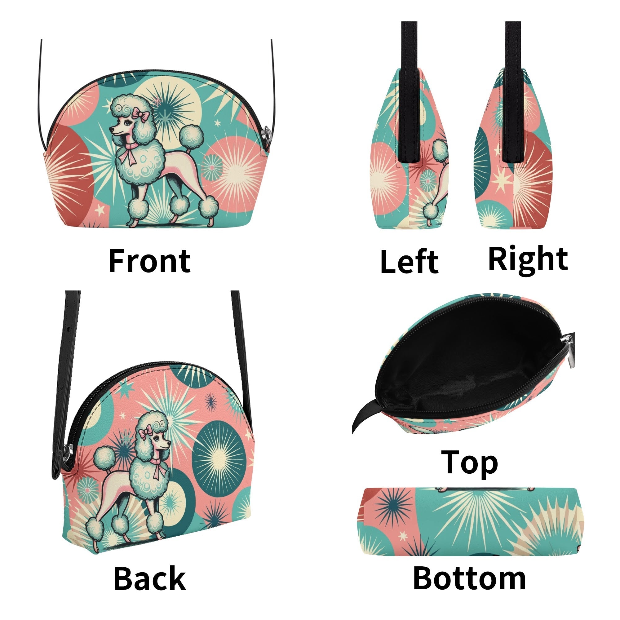 Bring on the charm with this 50s kitsch poodle mini purse, bursting with retro starbursts and mid mod sass. A playful crossbody bag for girls or retro lovers who adore a little flair.