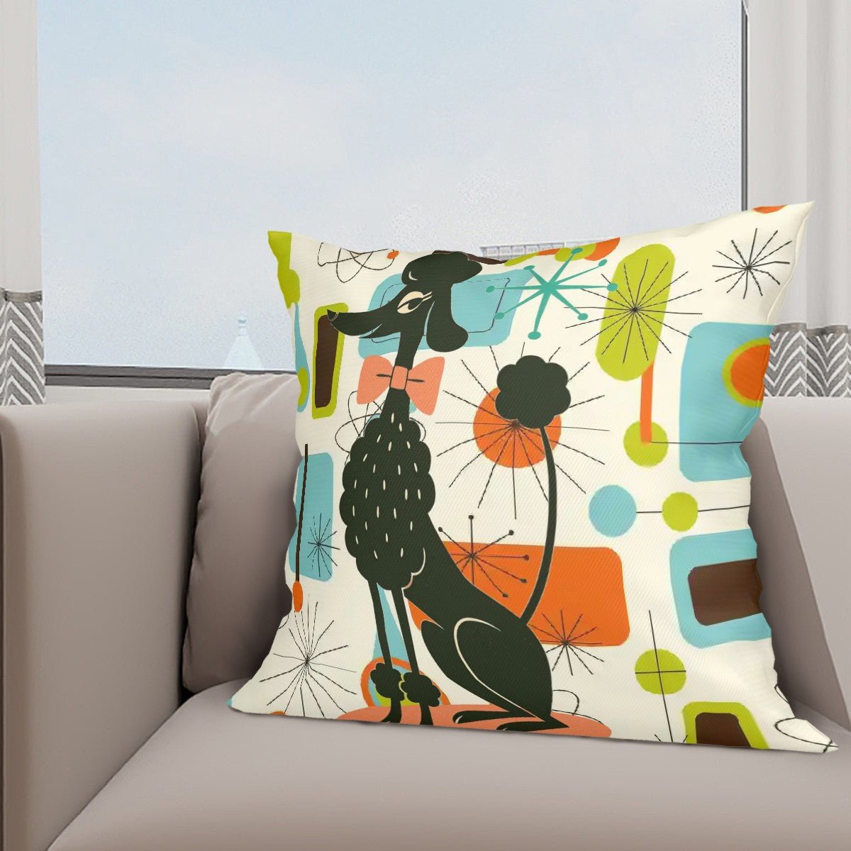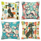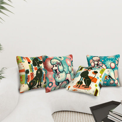 Bring your sofa to life with this fab set of four poodle pillow covers! Each cover features a different mid-century modern poodle illustration, bursting with starbursts, atomic shapes, and retro charm. Perfect for adding playful kitsch to your home. Pillow covers only, insert not included.
