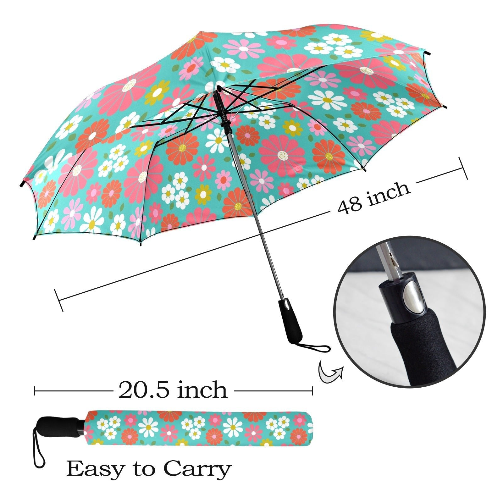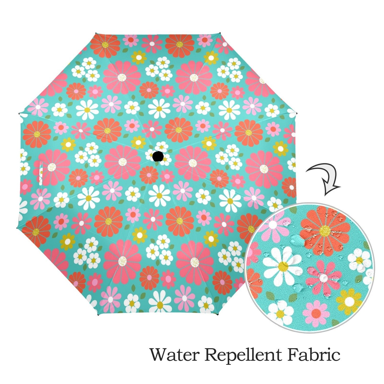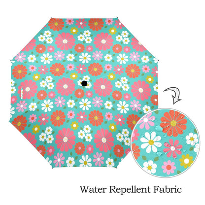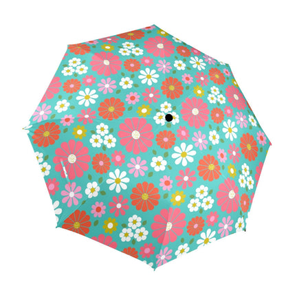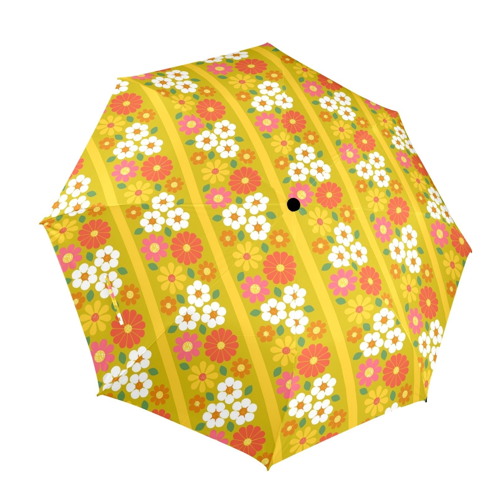 Retro 70s Floral Foldable Umbrella, Mid Century Modern Daisy Travel Parasol