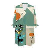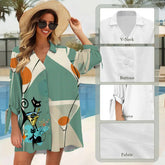 Atomic Cat Martini Lounge Shirt Dress, Mid Century Modern Coverup, Retro 50s Barware Print Beachwear