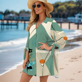 Step into retro glam with this mid-century modern shirt dress starring our iconic Atomic Cat and oversized martini glasses. Designed like a lounge scene straight out of the 1950s, this coverup brings major mod vibes to beach days, pool parties, or casual cocktails. The playful barware graphics and relaxed fit make it an easy go-to for stylish lounging.