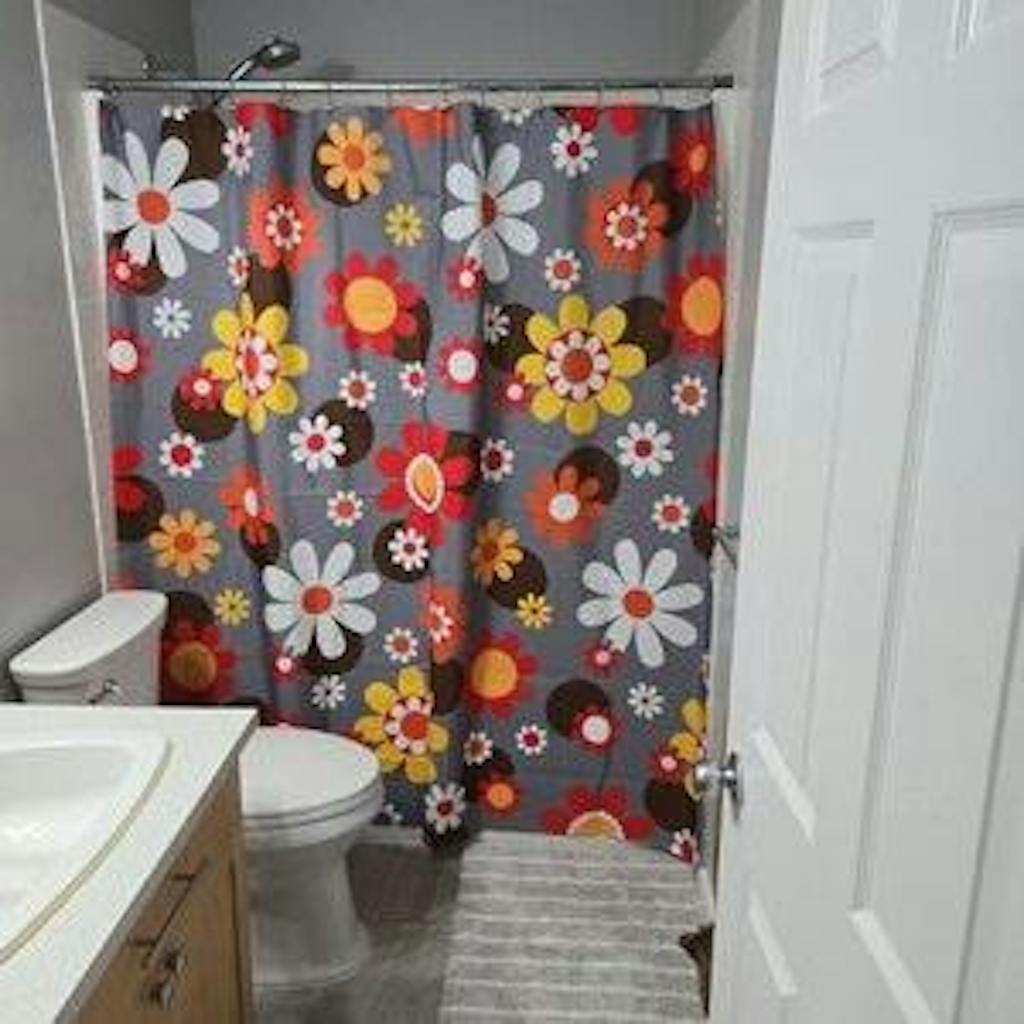 Bring peace, love and style to your bathroom with this retro boho flower power shower curtain. Vibrant daisies in psychedelic colors pop against a chocolate brown background for a groovy, mid-century modern look. Far out bathroom decor.