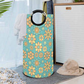 Liven up your laundry room with this brilliant Retro Mid Mod Groovy Hippie Daisy Floral Laundry Basket! Our boho-inspired laundry hamper is perfect for all of your hip and homey needs. Its waterproof oxford fabric is designed to last, while its lightweight and foldable nature make it perfect for storage and easy carrying. With a large capacity and sturdy aluminum handle with foam padding, you\'ll never be without the perfect hippie hideaway. Add a splash of style to any room in the house – use it in the closet, as clothing storage, as a toy bin, or even as an underwear hiding spot! Get groovy today with this awesome Retro Mid Mod Groovy Hippie Daisy Floral Laundry Basket –you won't be sorry!