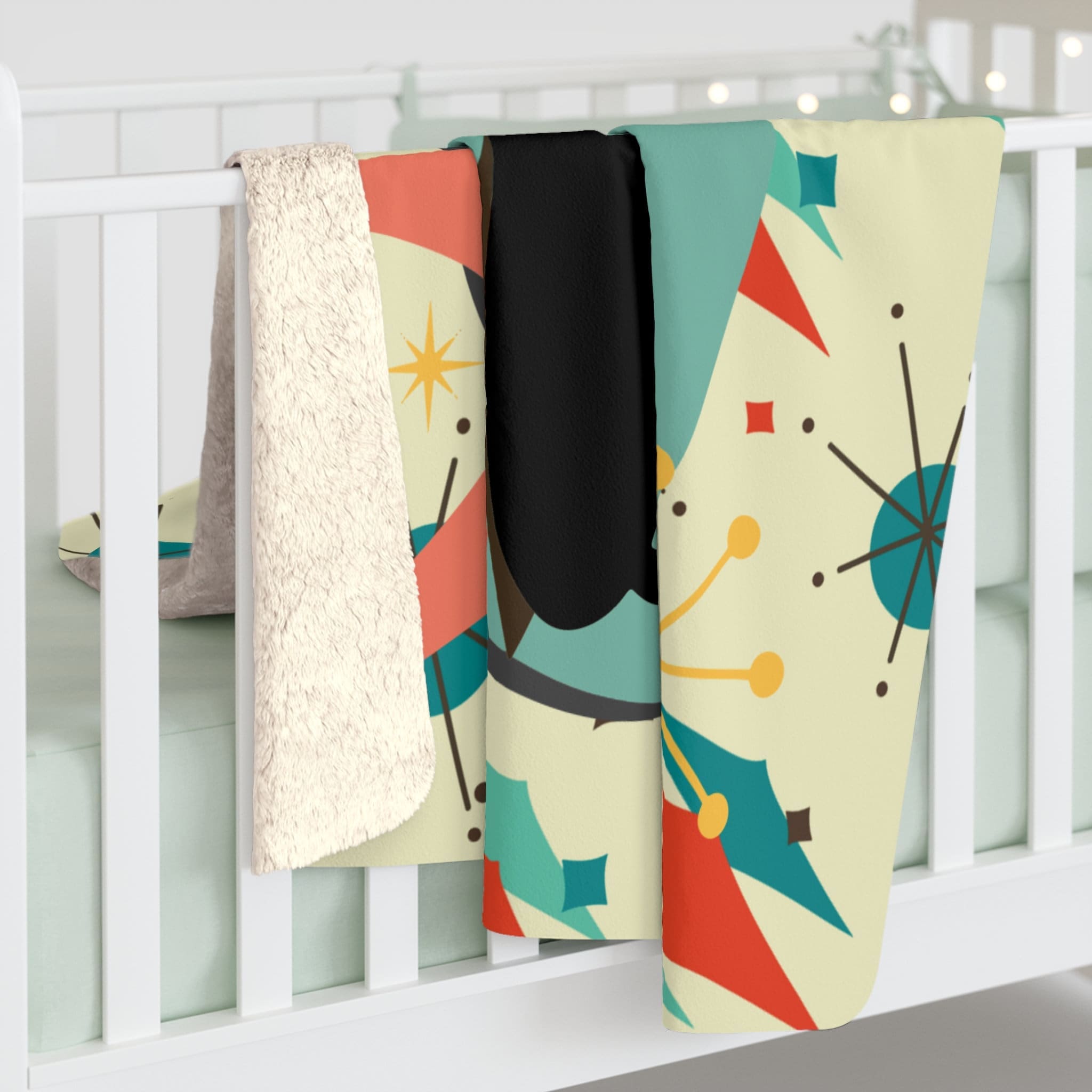 Atomic Cat Franciscan Starburst Sherpa Fleece Plush Blanket, Mid Century Modern Retro Geometric Living Room, Bedroom Decor - 129282023