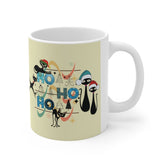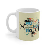 Mid Century Christmas Kitty Mug - Ho Ho Ho Retro Atomic Boomerang Starburst Holiday Cup - 11oz Kitschy Cat Lover Gift