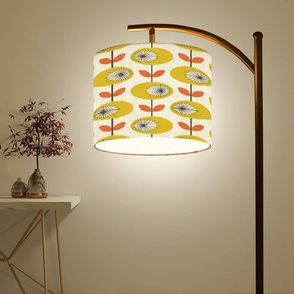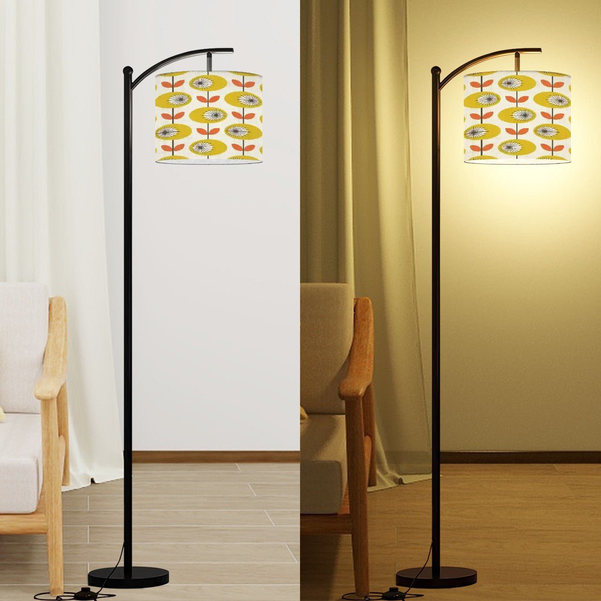 Add a Scandinavian mod touch to your space with this mid-century modern arc floor lamp! Featuring a vintage floral print in warm yellow and orange hues, this statement light brings the perfect blend of retro charm and modern elegance. The sleek curved arm and linen drum shade make it ideal for reading nooks, cozy corners, or stylish living rooms.