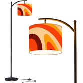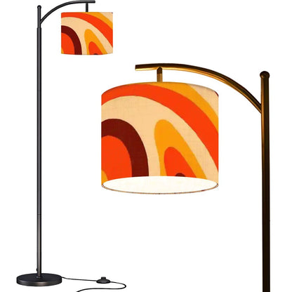 Turn up the funk with this retro mod arc floor lamp, featuring a bold psychedelic swirl design in vibrant orange, brown, and golden hues. A perfect statement piece for any mid-century modern or 70s-inspired space, this lamp combines groovy aesthetics with sleek curved lines. Add a pop of vintage charm to your living room, reading nook, or lounge with this eye-catching lighting accent.