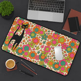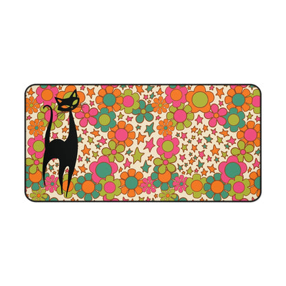 Atomic Cat Retro Groovy Desk Mat, 70s Flower Power Hippie Office Decor, Mid Century Mod Gaming Pad