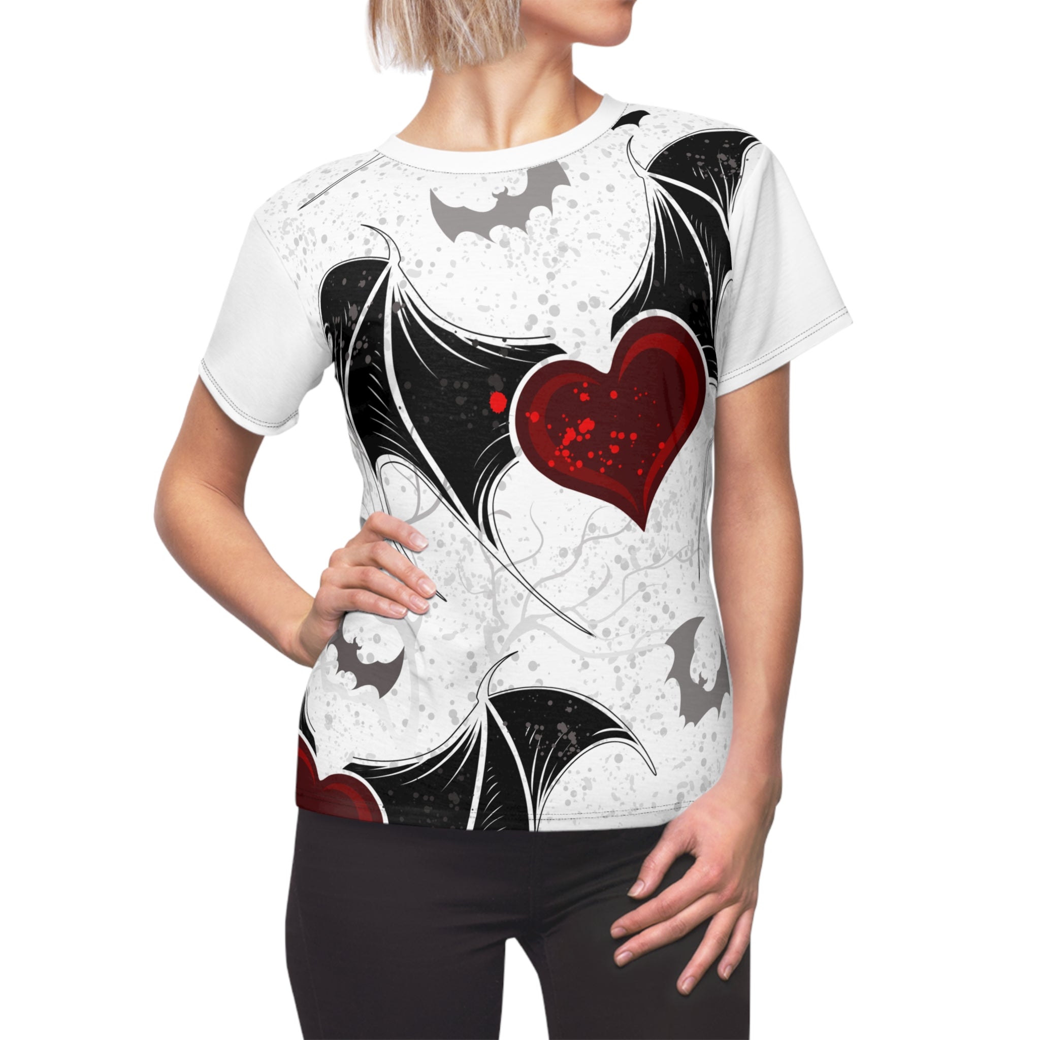 Gothic Bat Wing Heart T-Shirt, Dark Romantic Alt Fashion Tee, Punk Rock Vampire Aesthetic Shirt