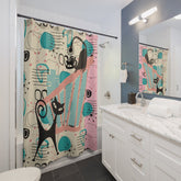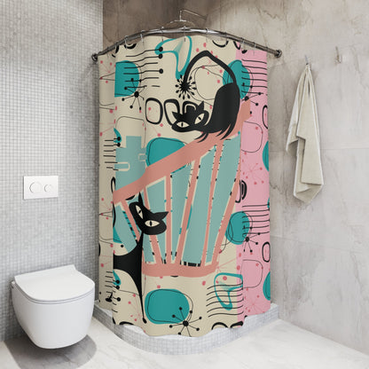 Atomic Cat Mid Century Modern Shower Curtain, Retro 50s Kitsch Geometric Bathroom Decor