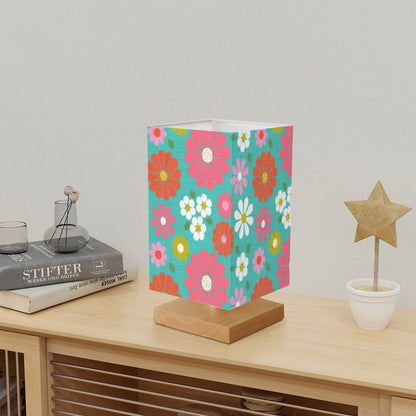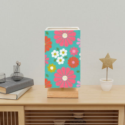 Bring flower power to your space with this playful MCM table lamp featuring a vibrant teal background and retro blooms in pink, orange, and white. A fun way to brighten any desk, nightstand, or reading corner.