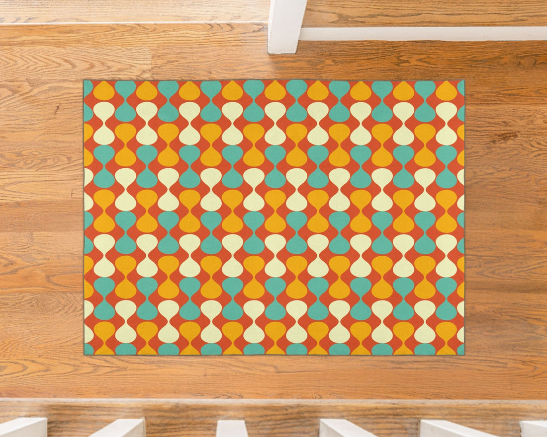 Mid Century Modern Retro 70s Mod Teardrop Orange Aqua Area RugMid Century Modern Retro 70s Mod Teardrop Orange Aqua Area Rug- Regular price