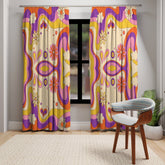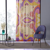 Cortinas con diseño floral hippie, retro, ondulado y moderno de los años 70