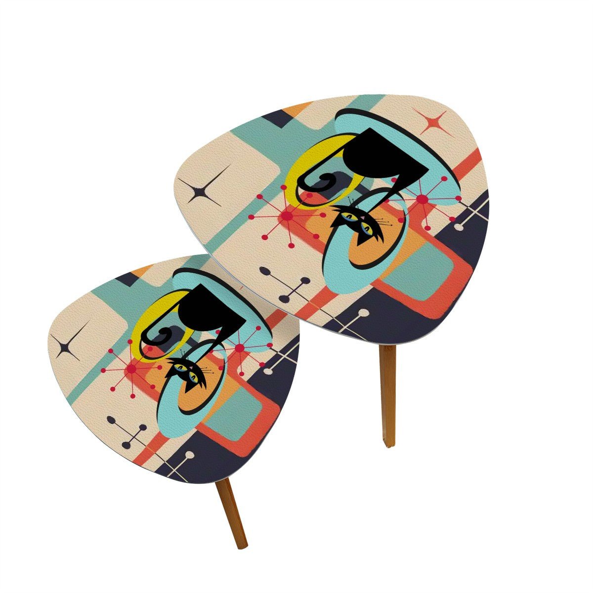 Mesas nido Atomic Cat de mediados de siglo, conjunto de muebles abstractos retro de los años 60, mesas de centro decorativas de estilo espacial MCM