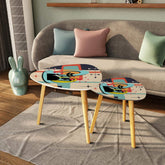 Dale un toque retro a tu hogar con nuestras mesas nido Atomic Cat Mid Century Modern. Con un diseño abstracto y moderno de los años 60, estas mesas darán que hablar. Perfectas para espacios pequeños, su diseño apilable ofrece versatilidad y estilo. ¡Dale un toque moderno a tu hogar con nuestras mesas de centro decorativas Space Age de MCM!